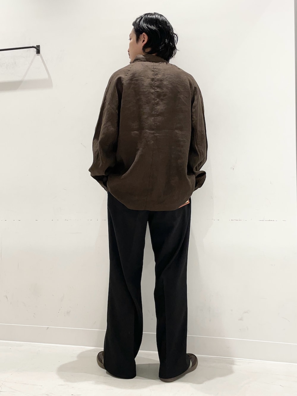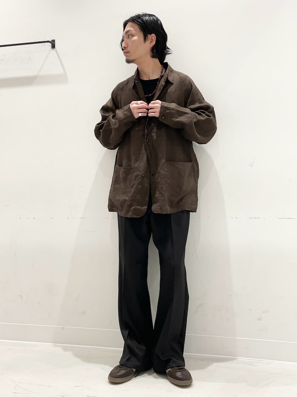 カバーオールのようなシルエットで、シャツのような着心地。そしてリネンの程よい風合いがカチッと決めたそれ以外を少し甘くしてくれているような親しみやすいコーデかと!
