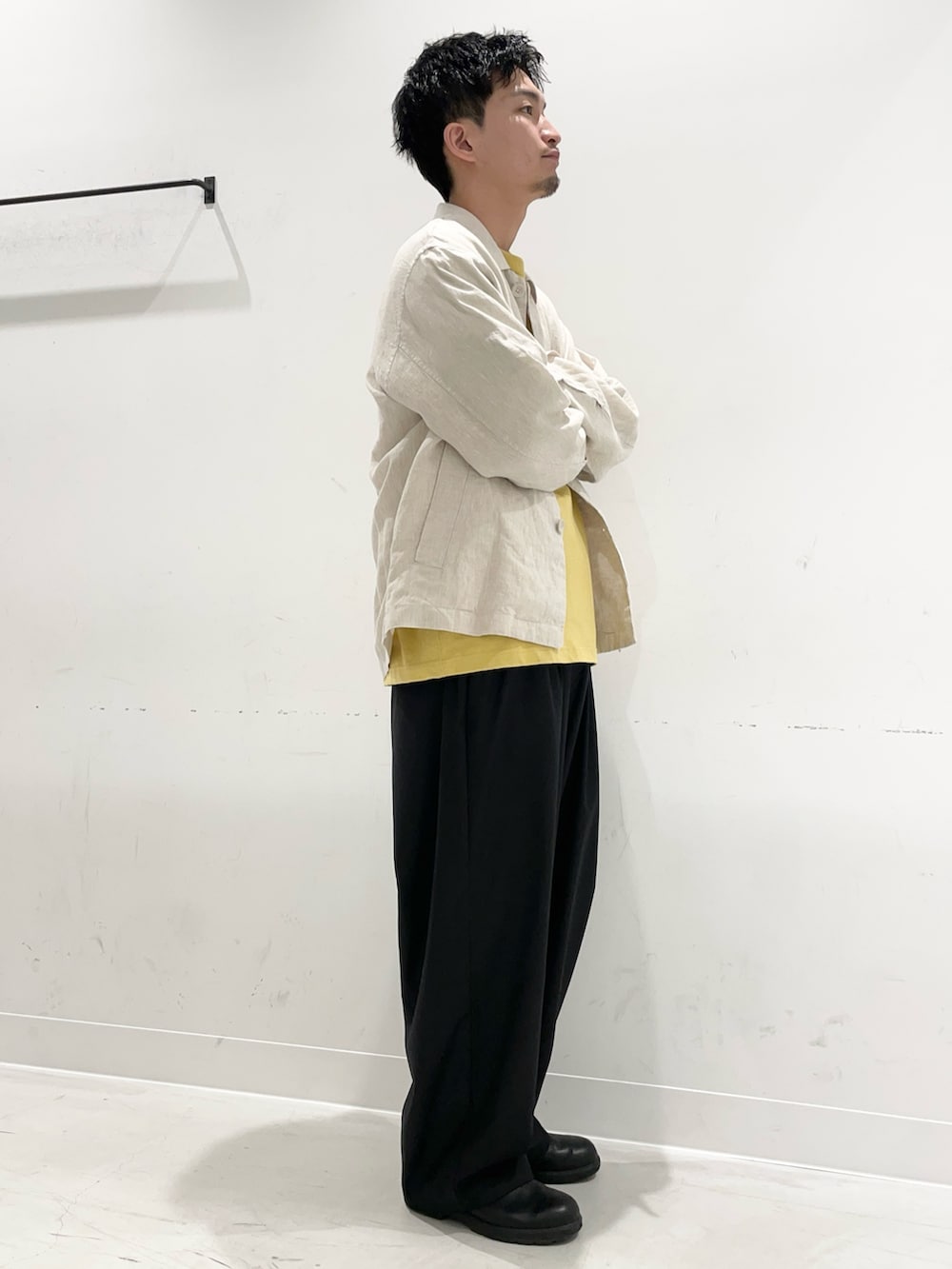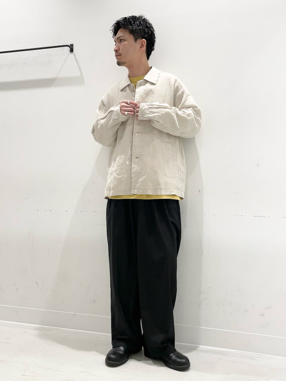 リネンの風合い全面に、シャツのようなカバーオールとしてサラッと着用できます◎