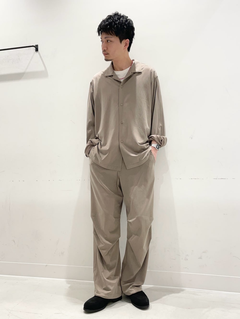 程よく艶感のある表面が、たとえセットアップでも野暮ったくならず、すっきりとした印象に!