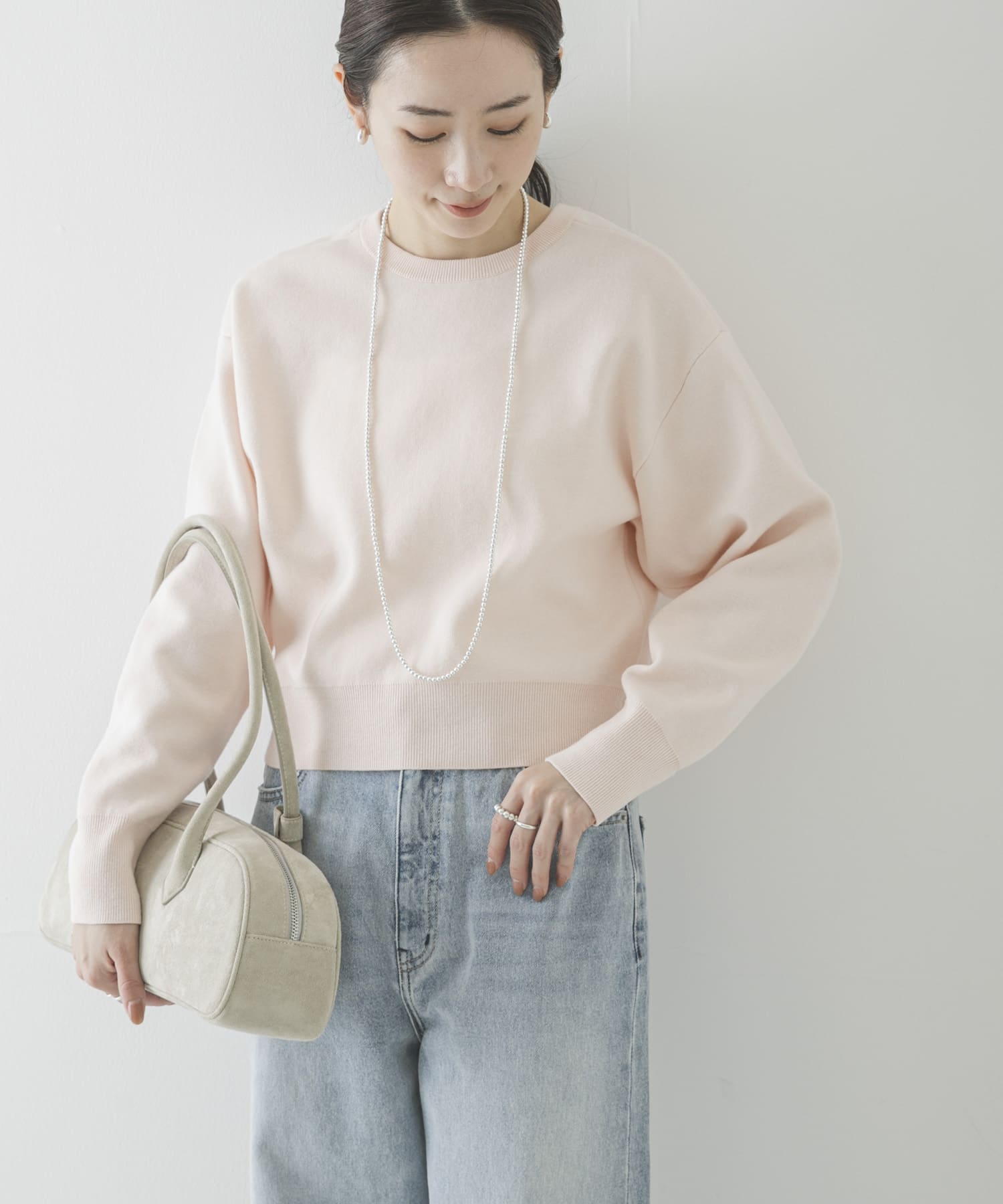 ダブルフェイスクルーネックニット