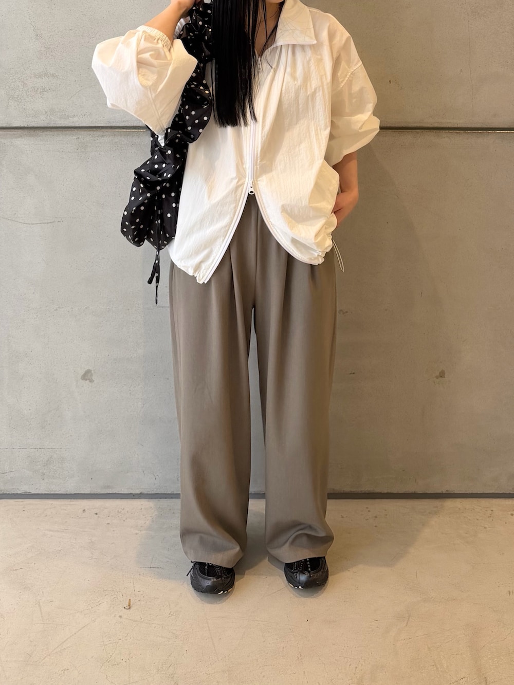 ナイロンのブルゾンはカジュアル感やスポーティ感が強くなってしまうことが多いですが、綺麗目に着たい方におすすめです❣️