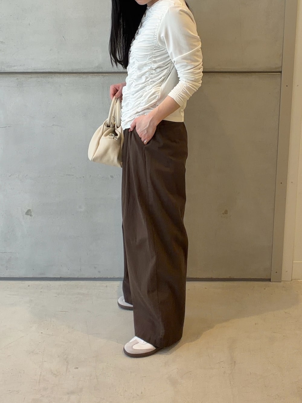 身長157cmでゆるっとスニーカーに裾がたまる感じで着ていただけます✨