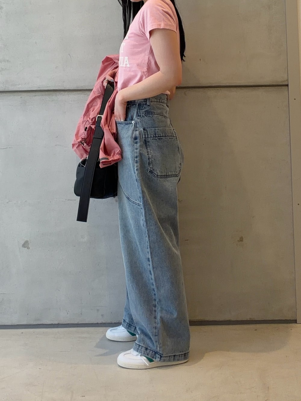 ベルトをしてガッツリハイウエストで履くのも可愛いですが、少しウエスト位置を下げてルーズに履くのも可愛いです👖