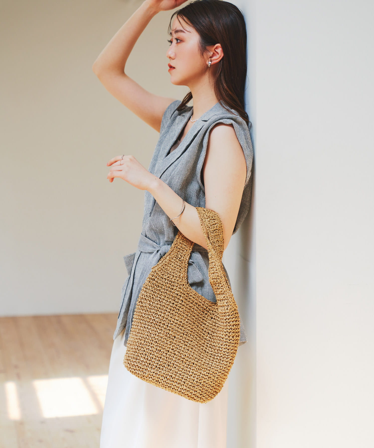 RODE SKOコマ編みペーパートートバッグ- カラー: