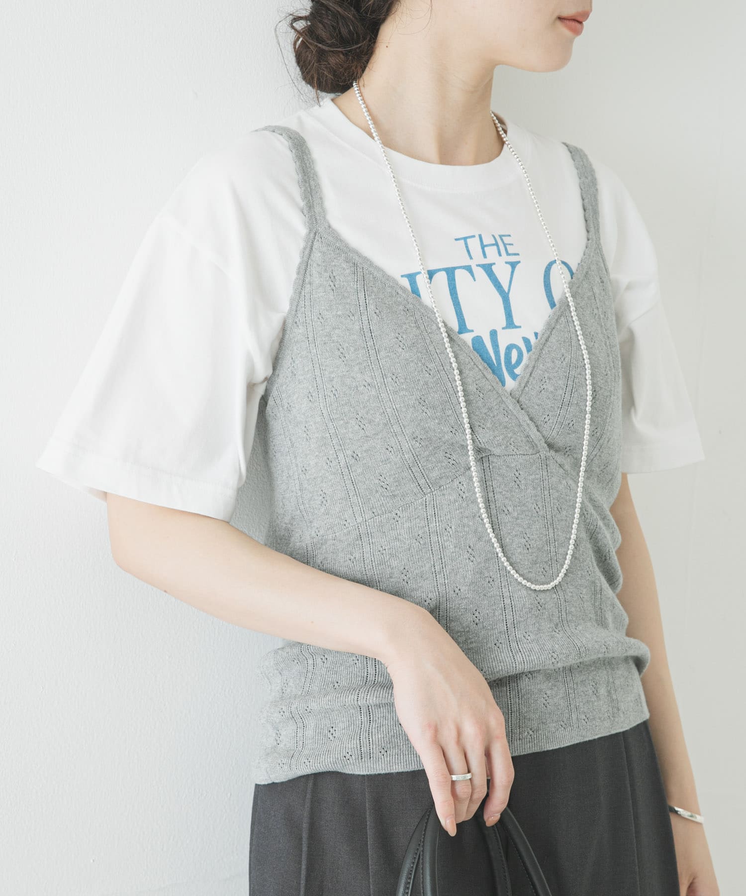 URのトップスはキャミソールとニットが別売りのアイテムですが、セットで着ると統一感があってお気に入りです♪