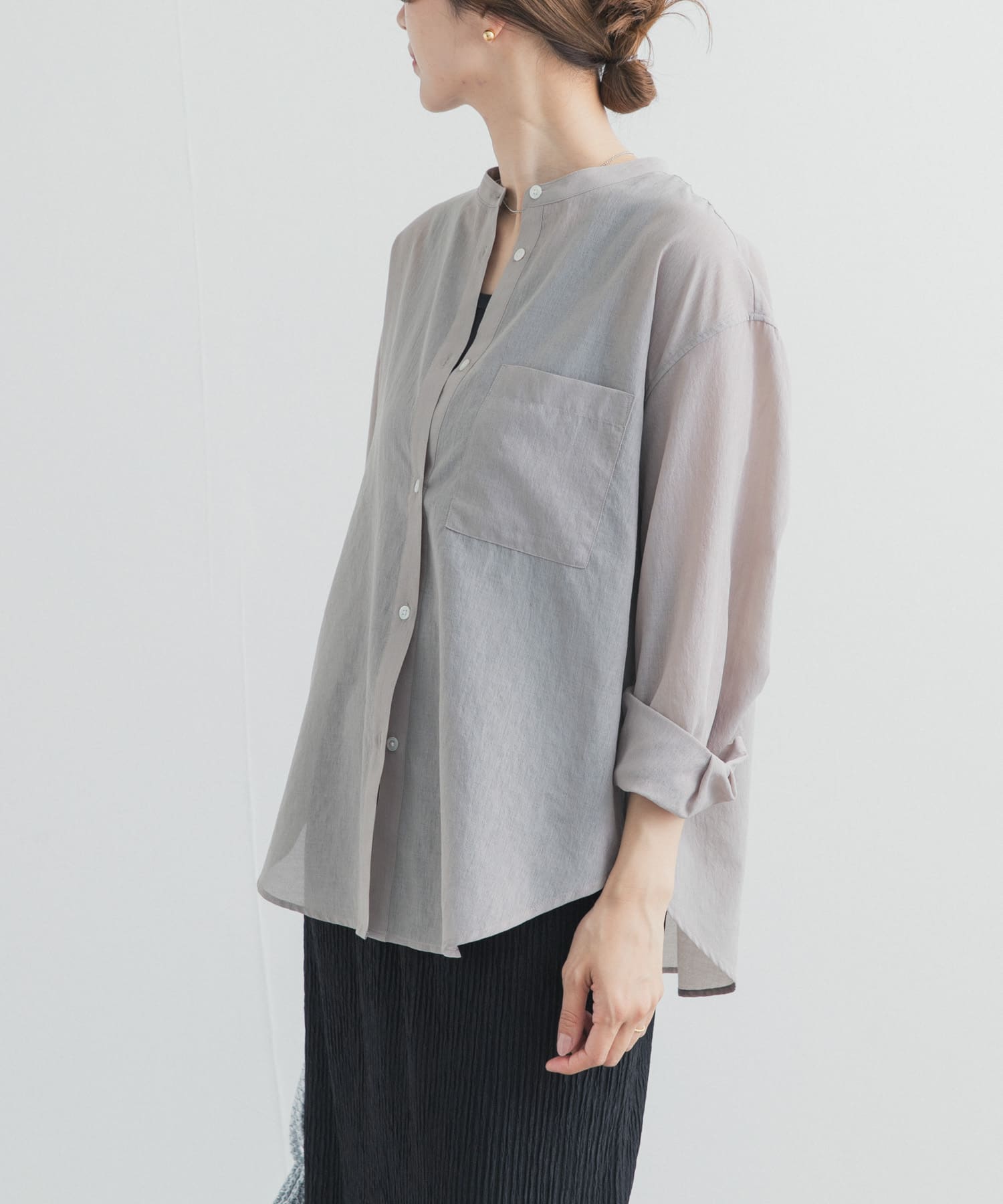 『UR TECH』バンドカラーシャツ