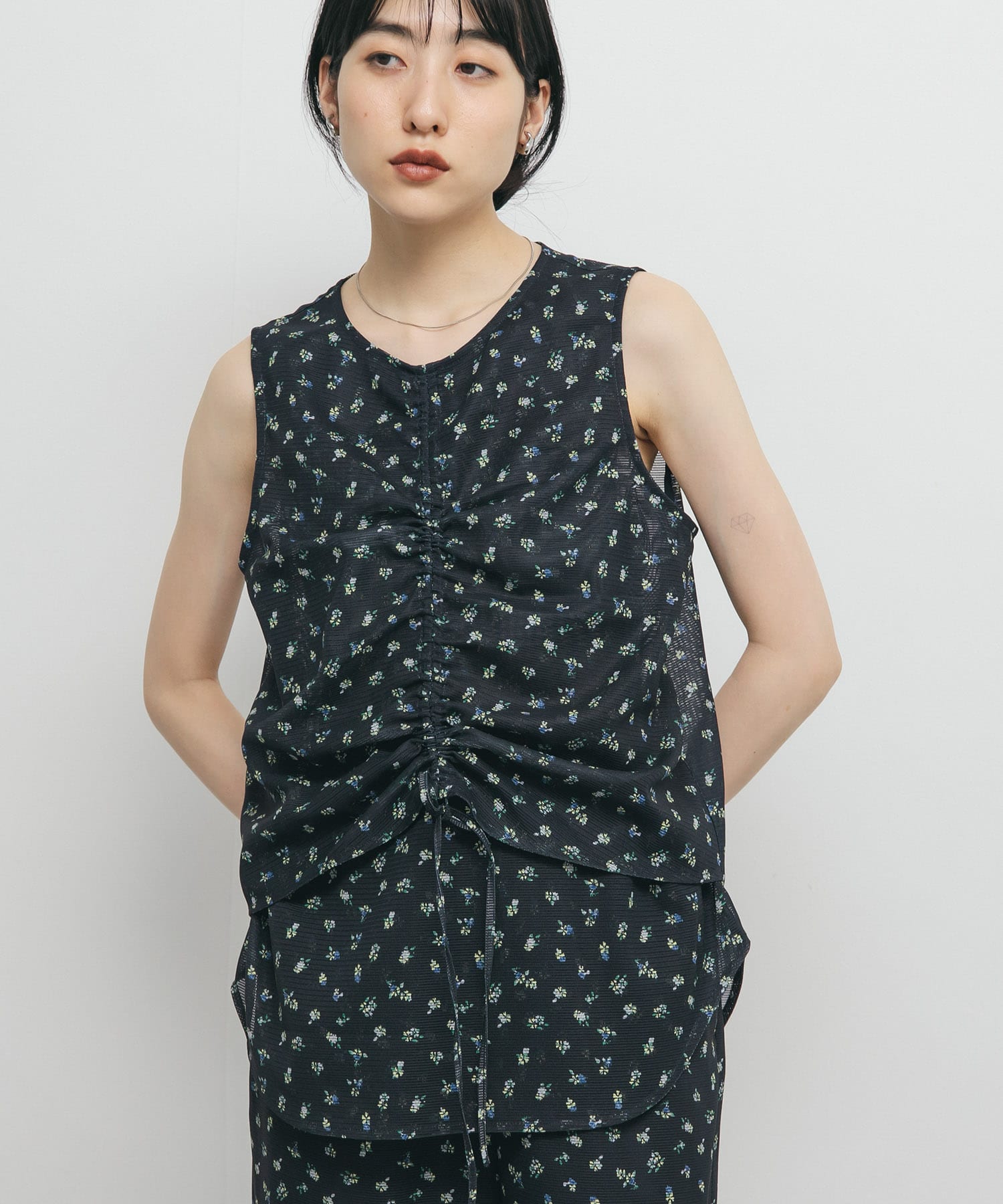 小花柄ですがメッシュ素材なので甘さ控えめで大人も着やすいです。