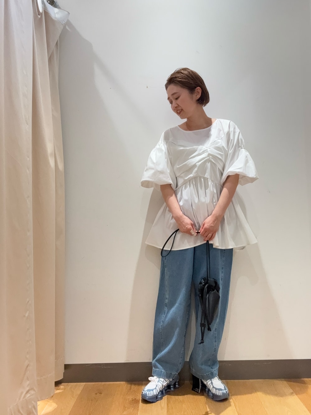 デニムとスニーカーのメンズライクな合わせでも、甘辛でかわいいです🩷