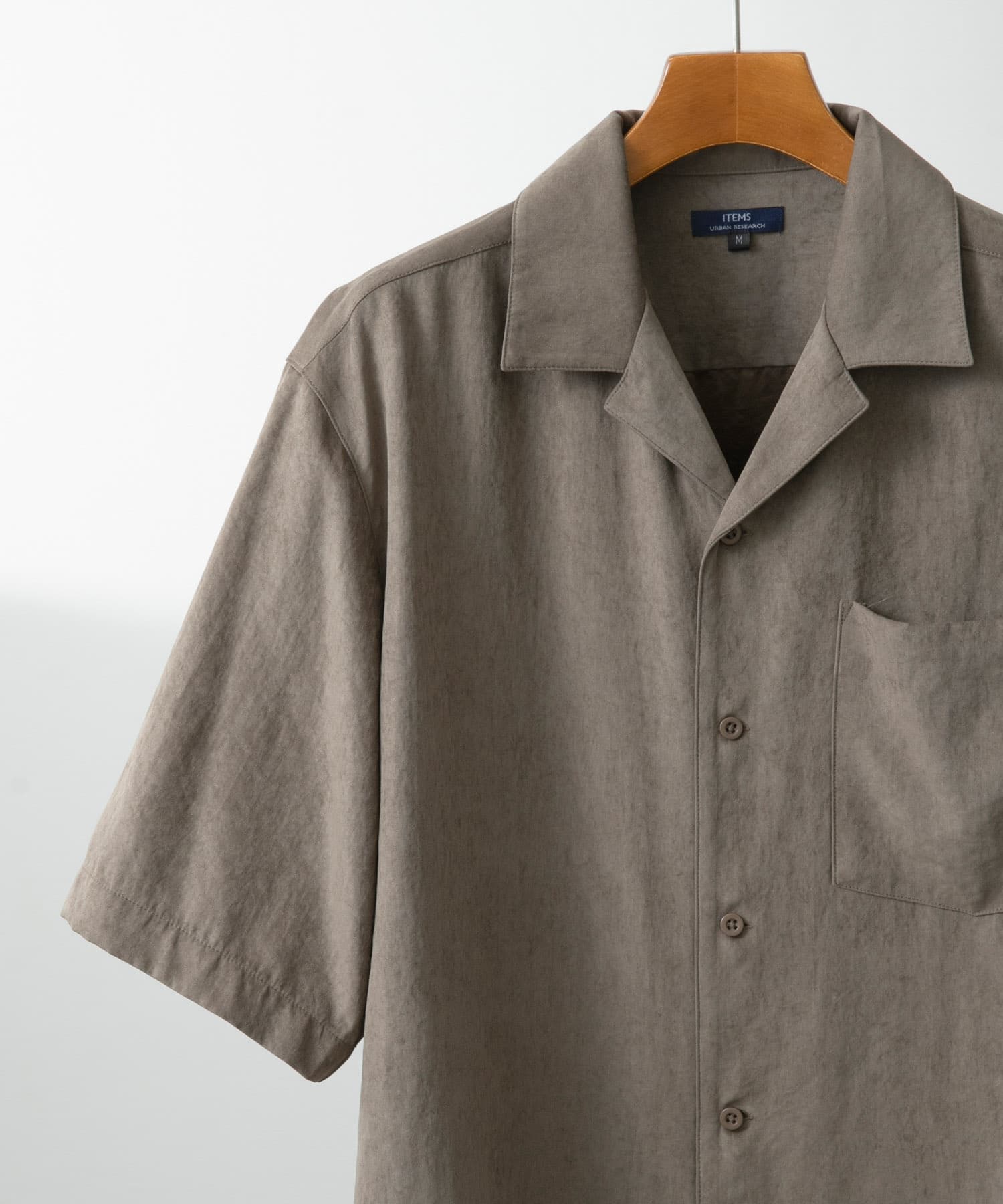 フェイクスエードの無地オープンカラーシャツ。