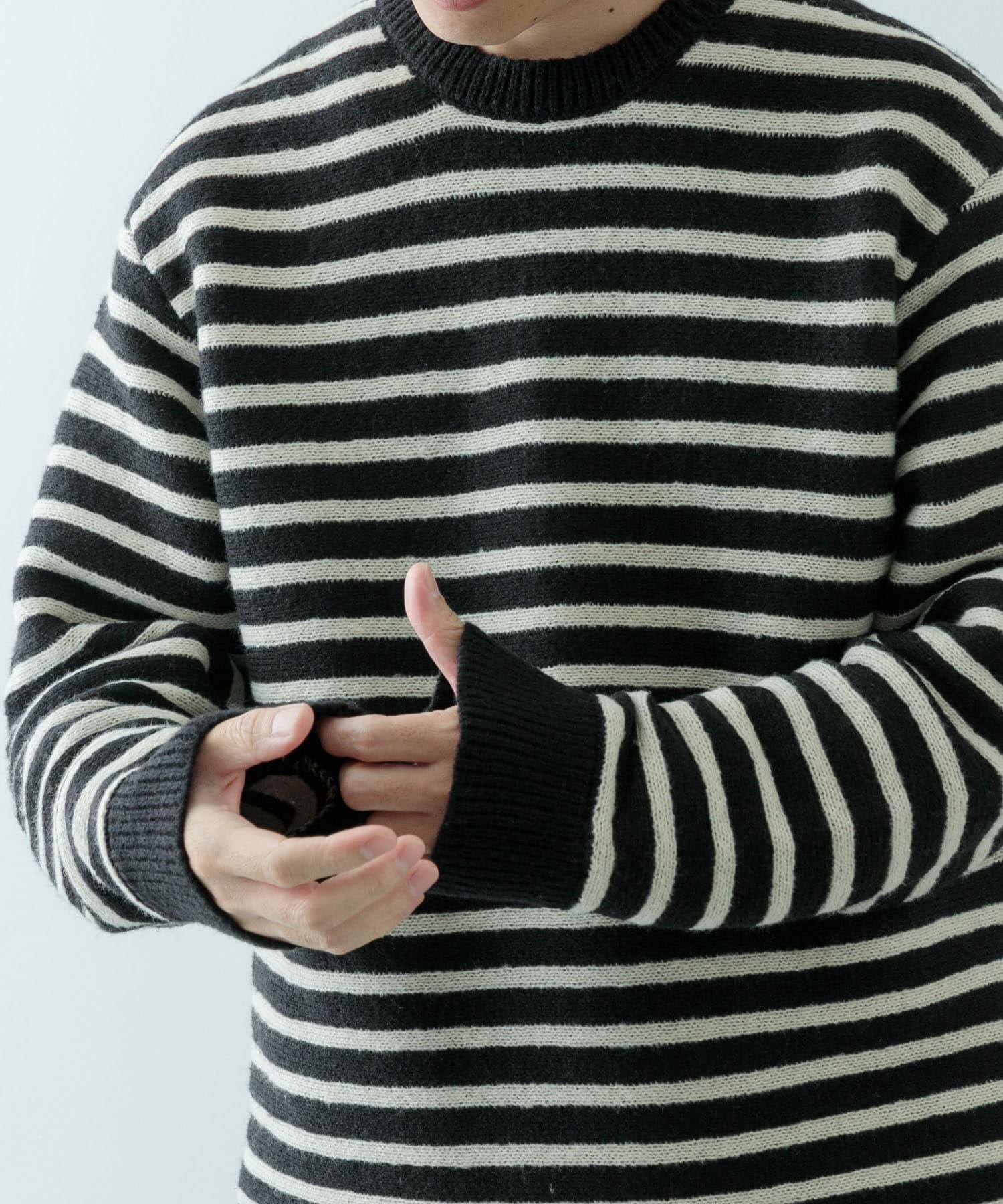 ふんわり、やわらかな素材感のボーダーニット。