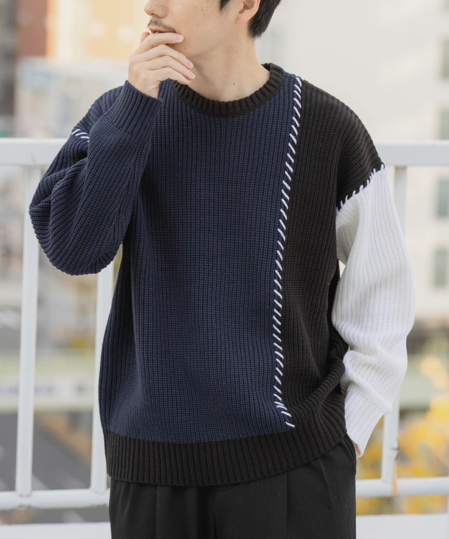 ニットがカジュアル感かなり強めになるので、抑えめな色で、ジャケットと合わせました。