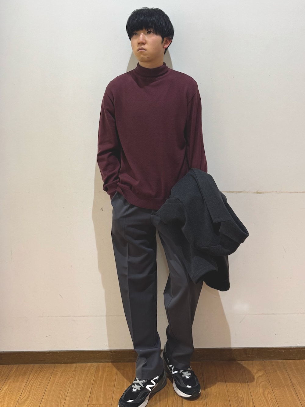インナーはタートルネックニットですが、薄めのため、今の季節に着るのにちょうどいい暖かさになります。