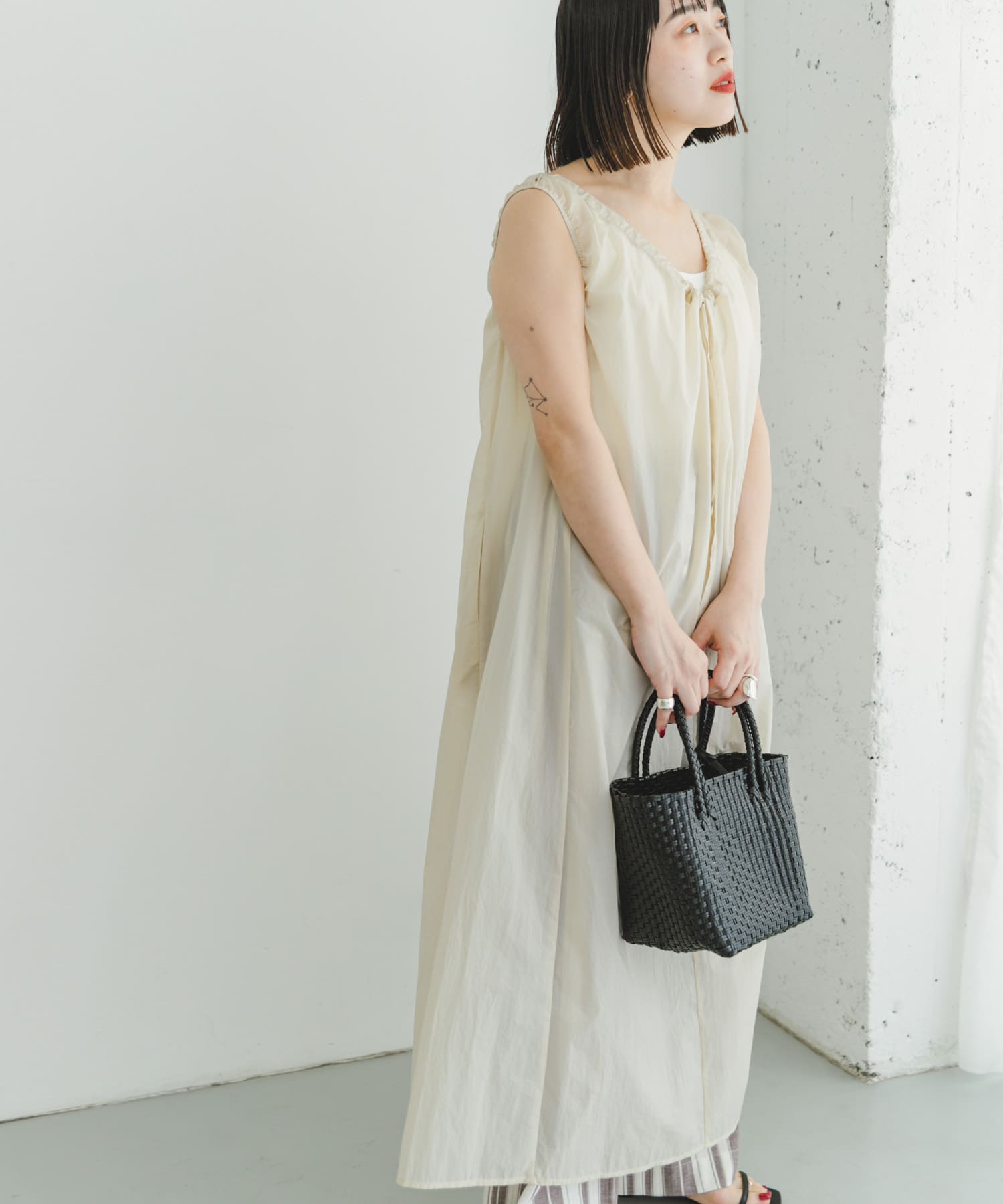 トップスはノースリーブワンピースで生地が薄めになっています!後ろに紐があって首元の広さを変えることが出来ます!