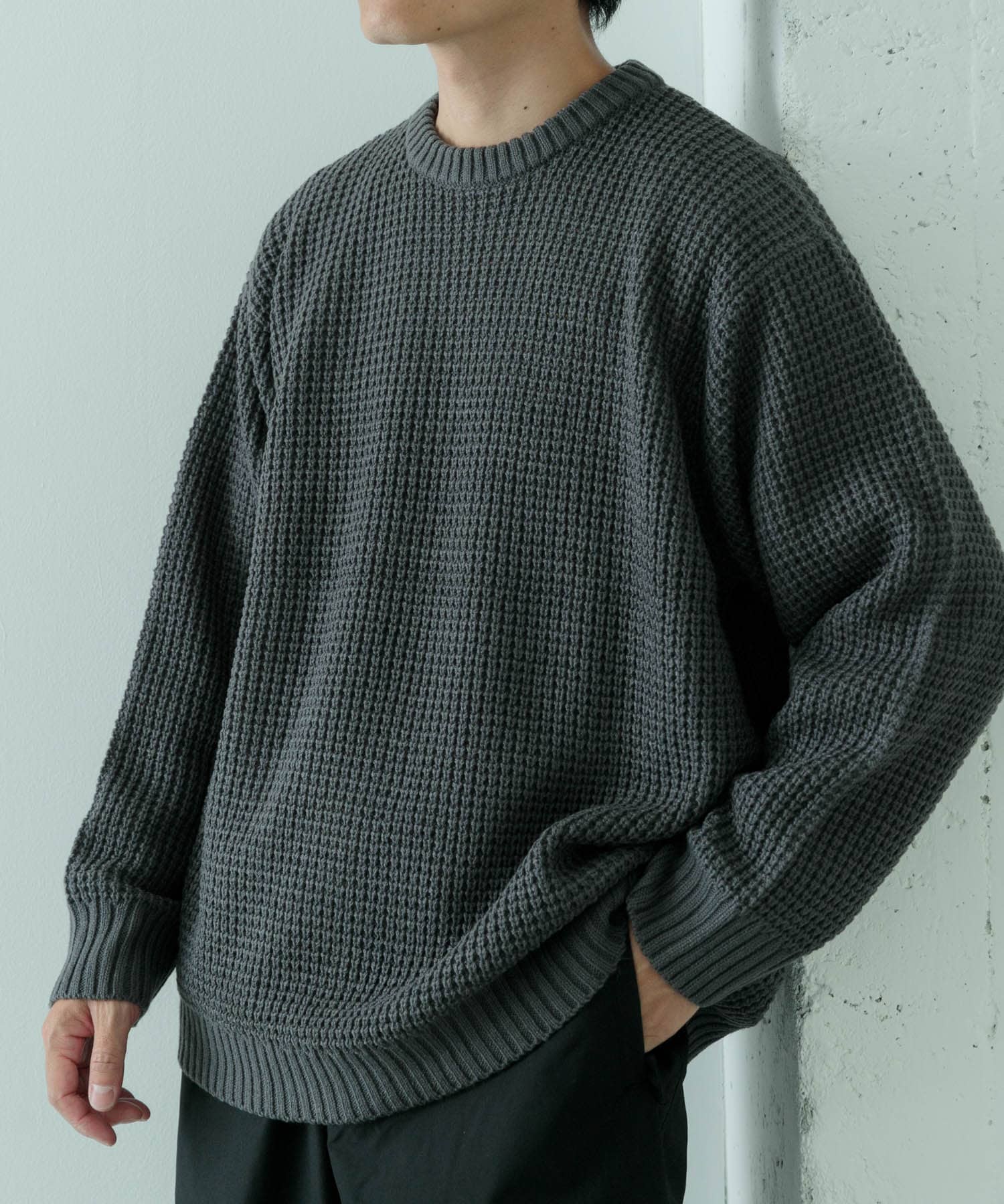 ITEMSワッフル編み クルーネックニット- カラー: