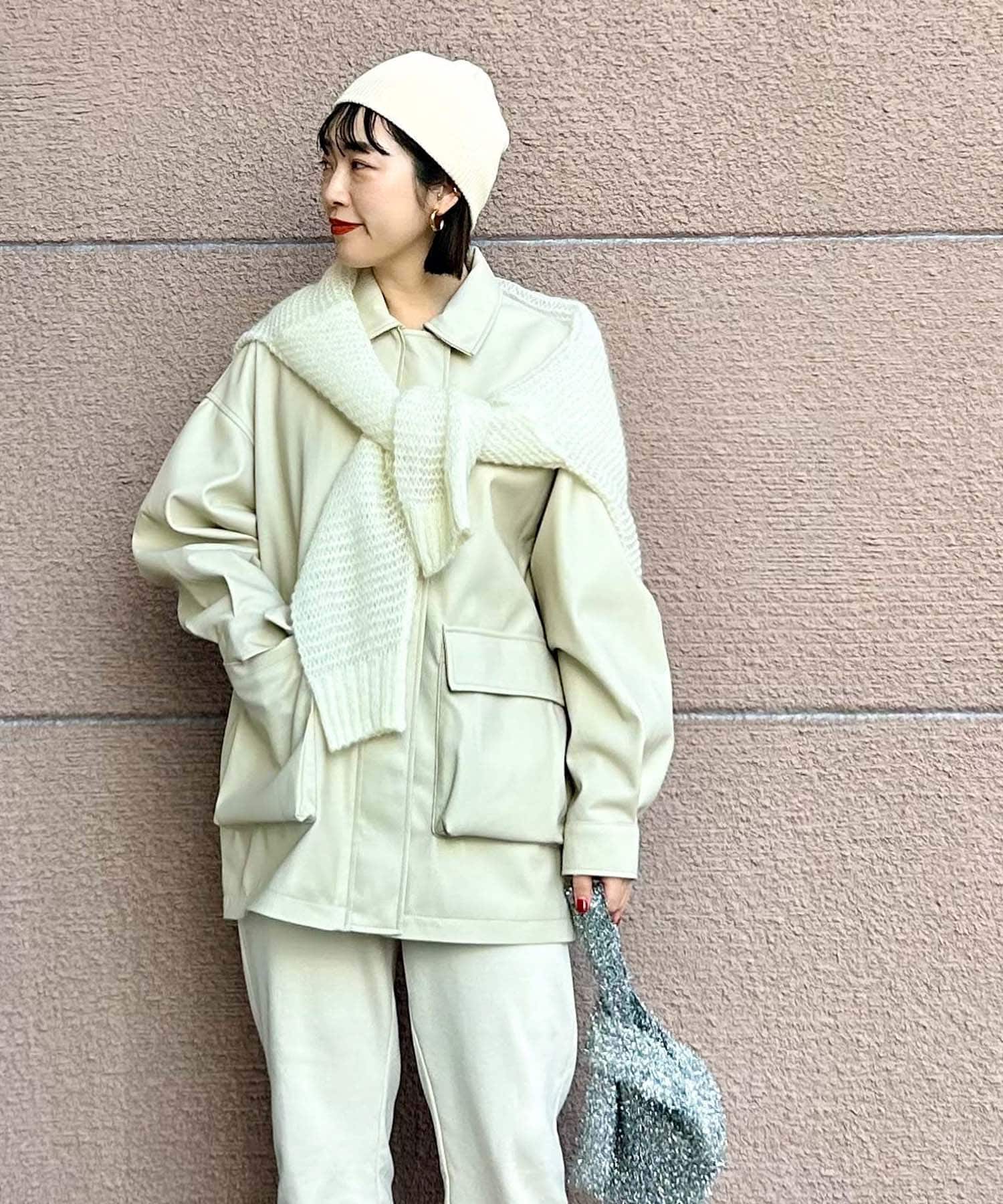 レザージャケットは大きめになっているので中に分厚めのニットなど着ていただいても大丈夫だと思います!