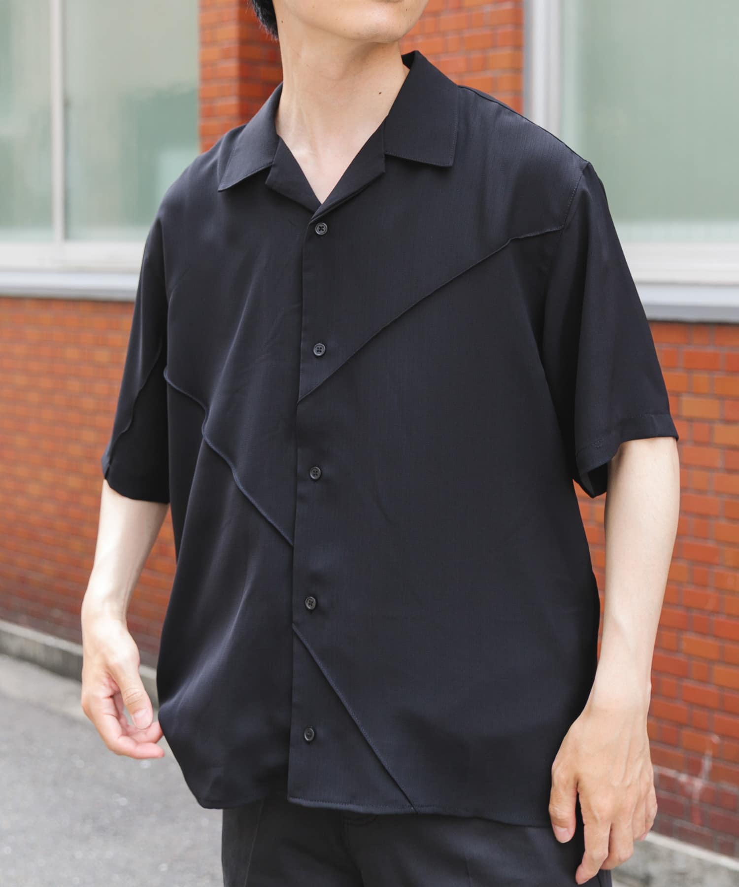 ITEMSパネルピンタックオープンカラー半袖シャツ- カラー: