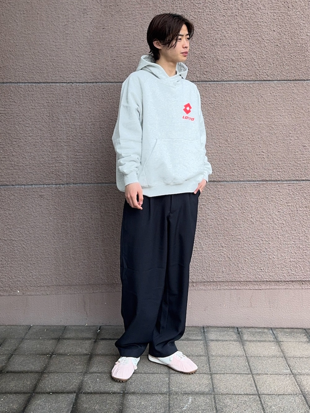 LOTTOのパーカーは生地が良くこれからの季節に活躍するアイテムです!1枚でも上からブルゾンを羽織っても使えるので、長く使っていただけます!スラックスは太めのシルエットで、1番履きやすい形です!なんでも合います!