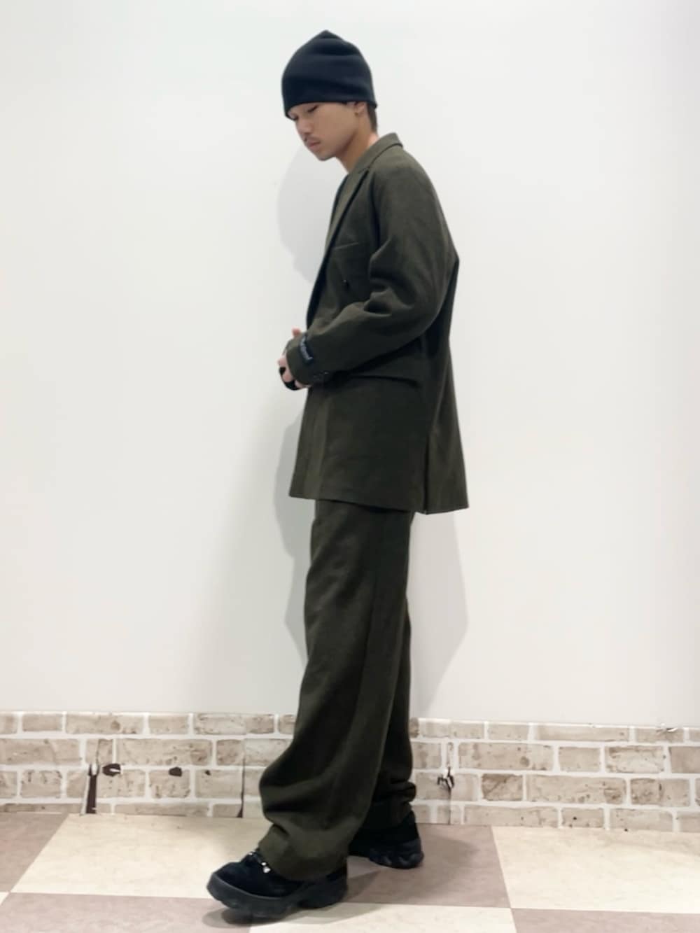 ダブルジャケットのセットアップコーデになります。