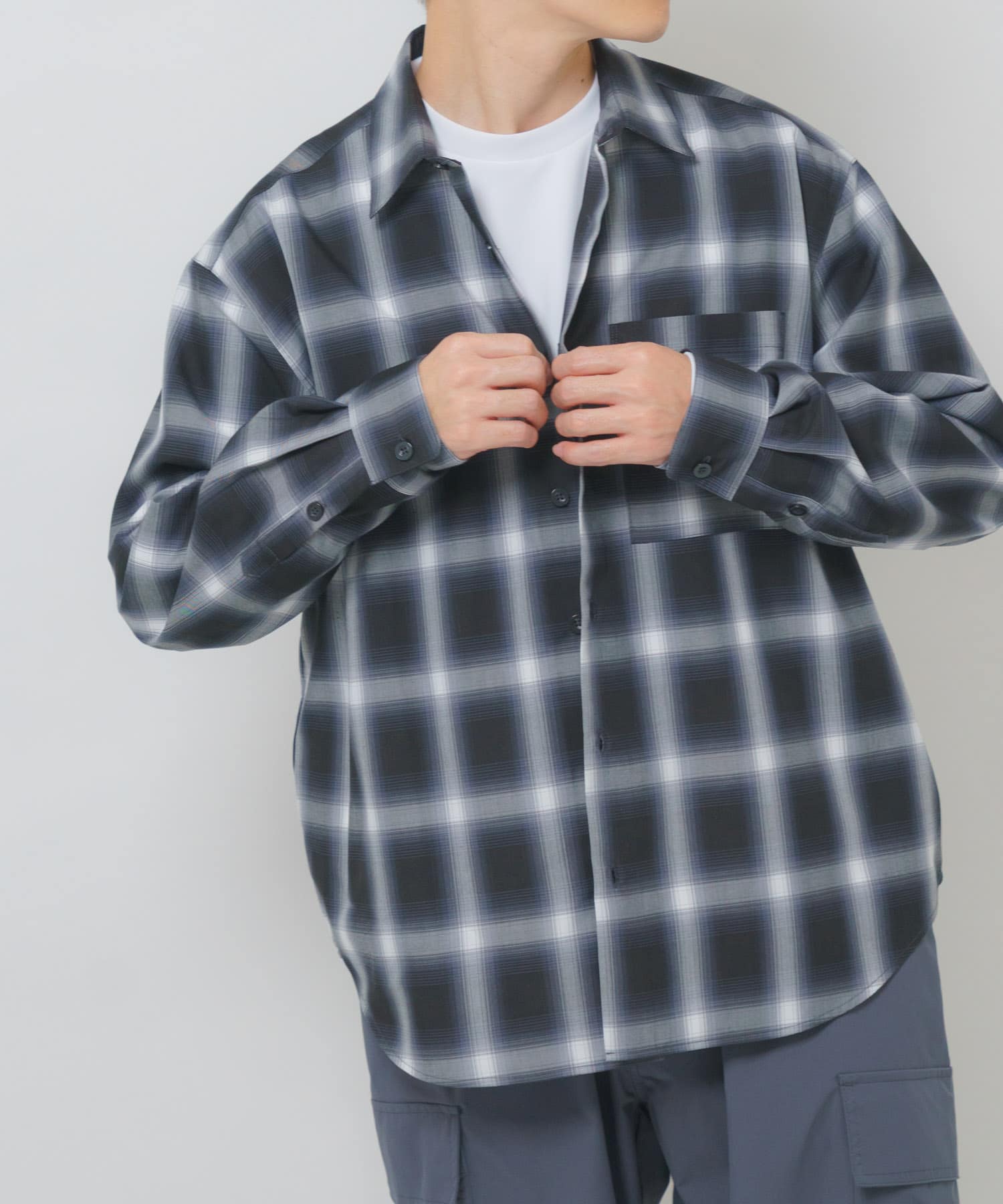 オンブレチェックレギュラーカラーライトシャツ
