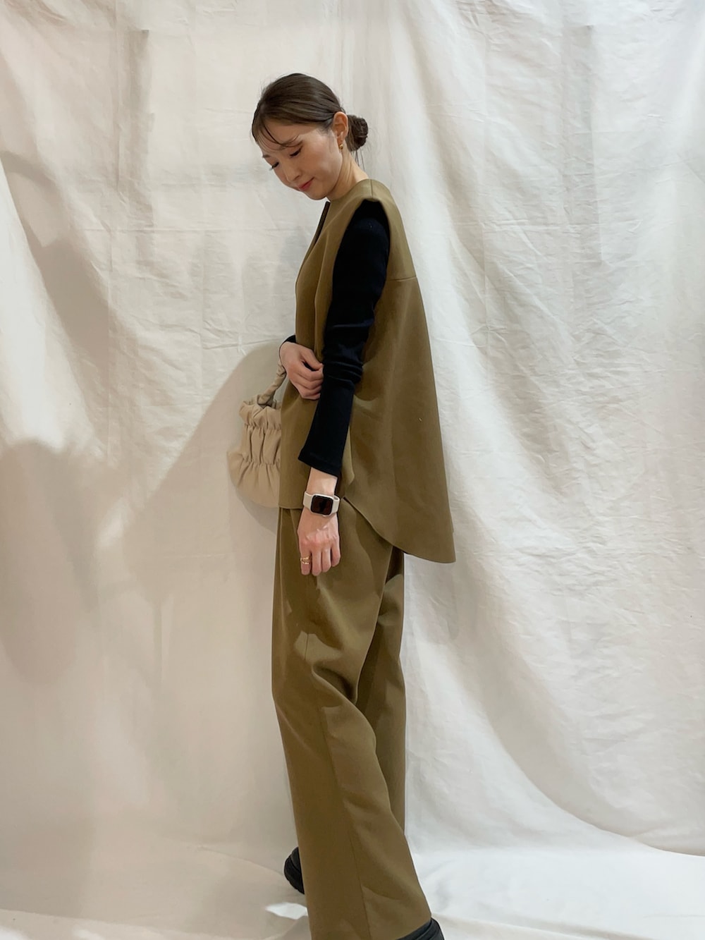 厚みのあるボンディング素材で高見えするアイテム!体のラインを拾わないのが嬉しいポイント◎
