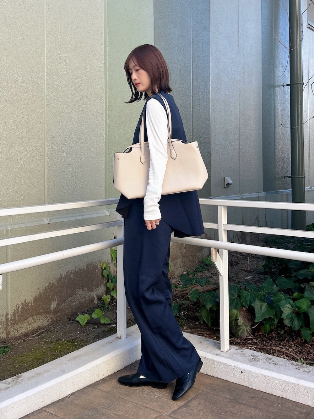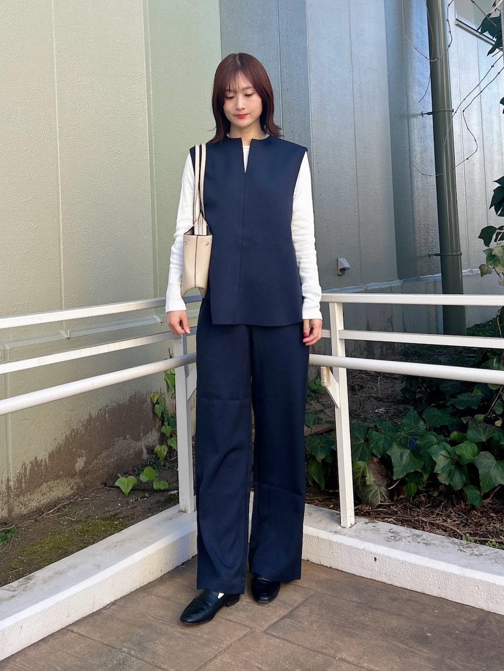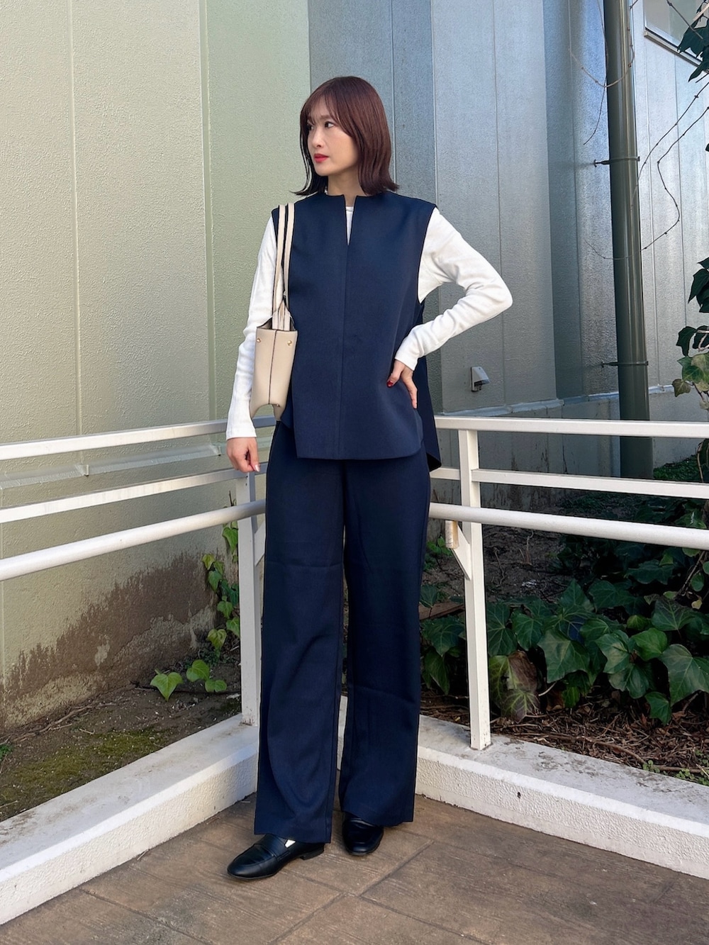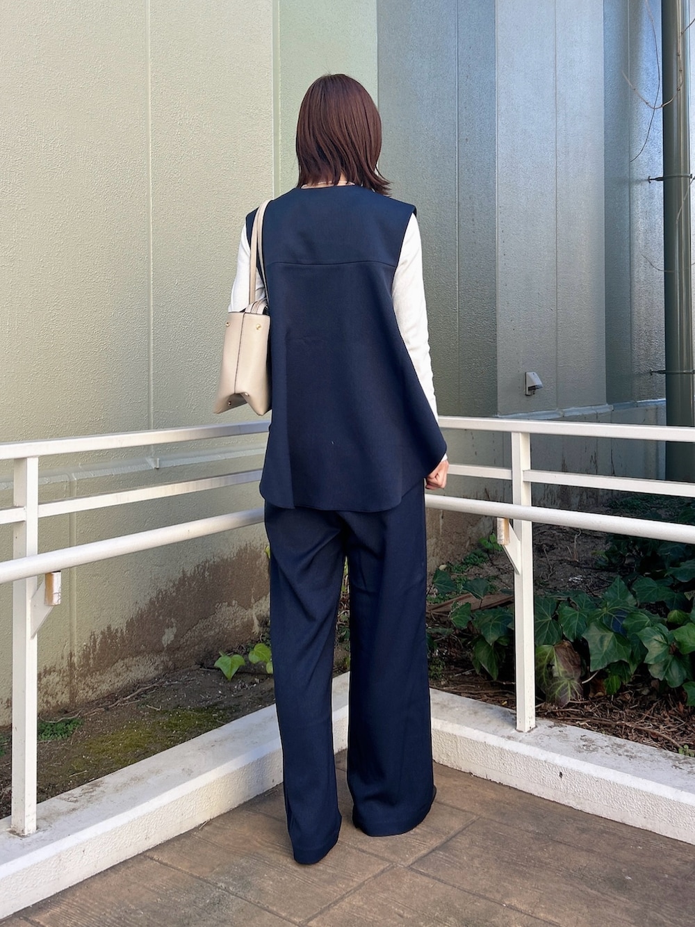 立体感のあるベストが上品さを演出しつつ、