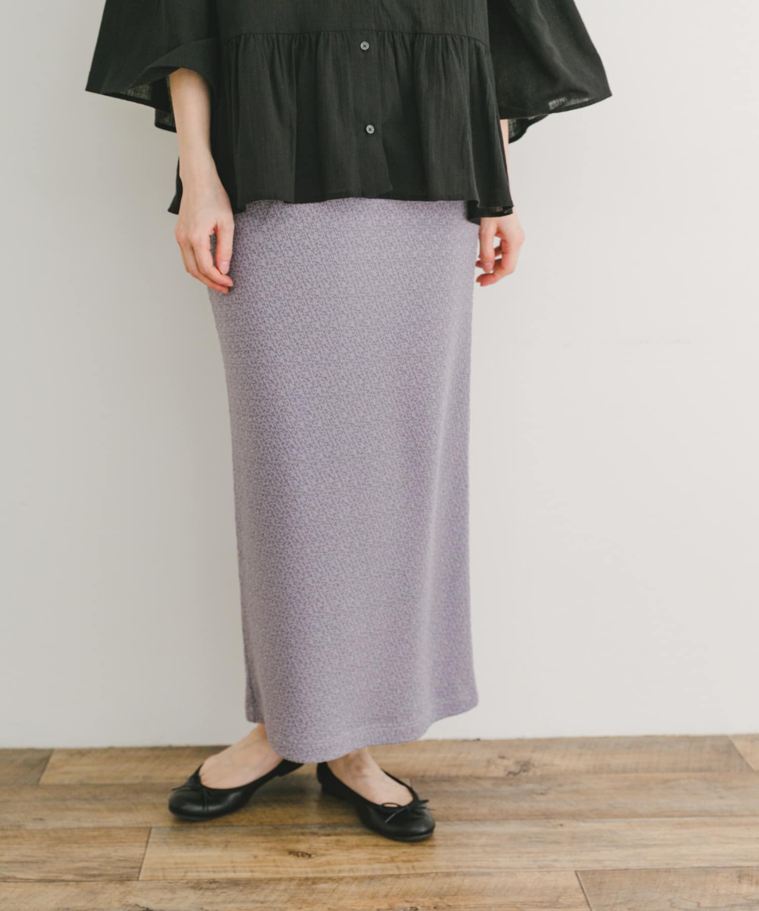 ✔︎スカートは楽ちんなのに、表情のある素材感とタイトめなシルエットで大人っぽく◎