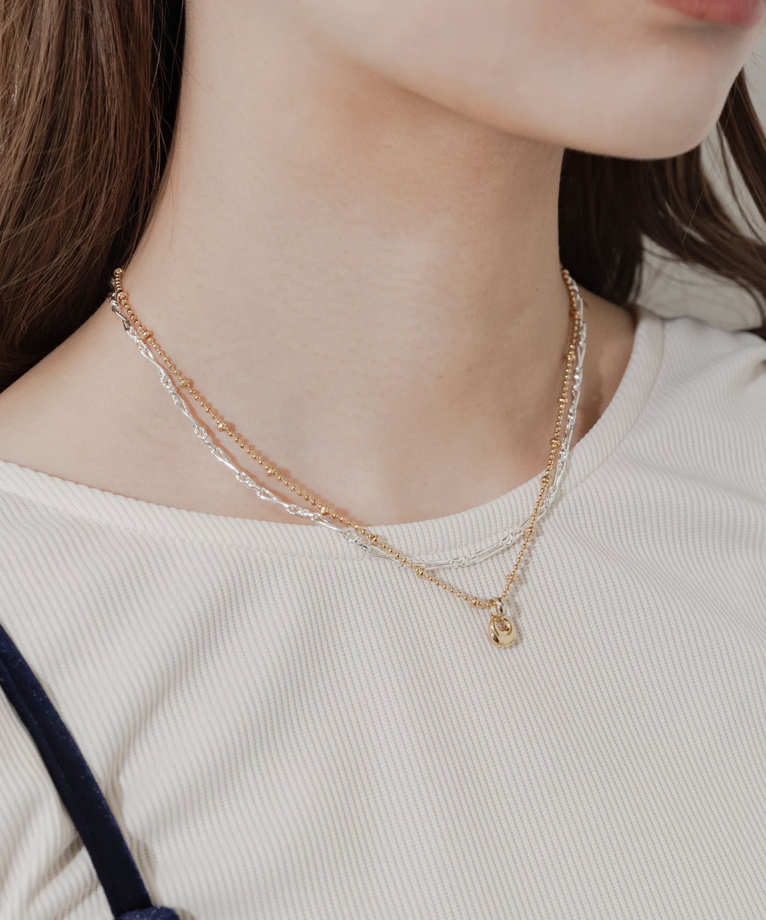 メタルチャームコンビメッキ2セットネックレス