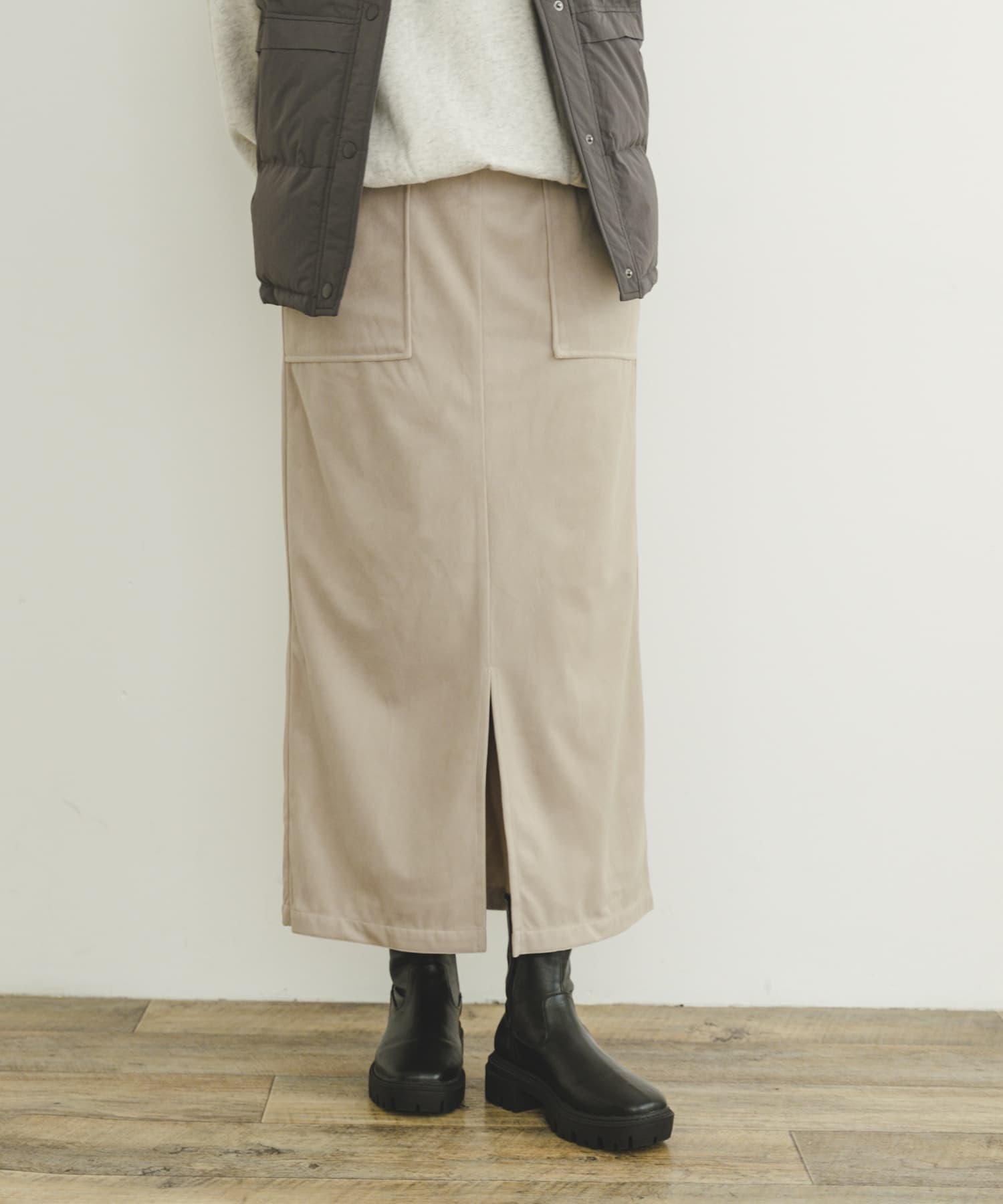 ✔︎スカートはベロア調の生地で、綺麗め感があります。サイドファスナーですが後ろがゴムになっているので苦しくなく履き心地良いです😊