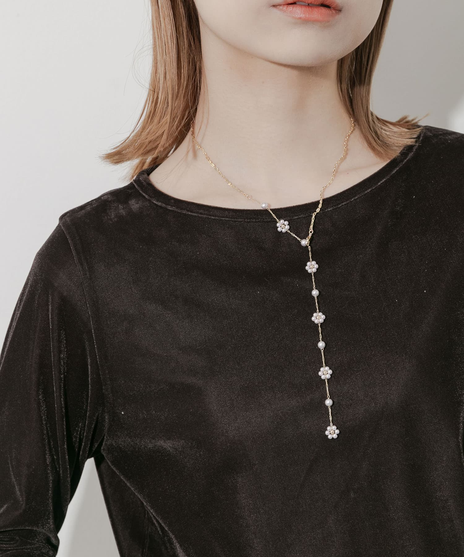 パールフラワーYネックレス