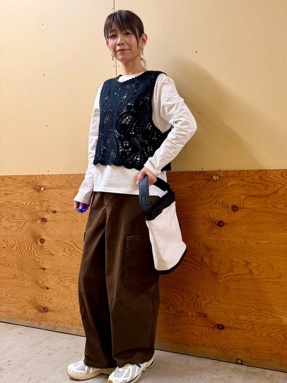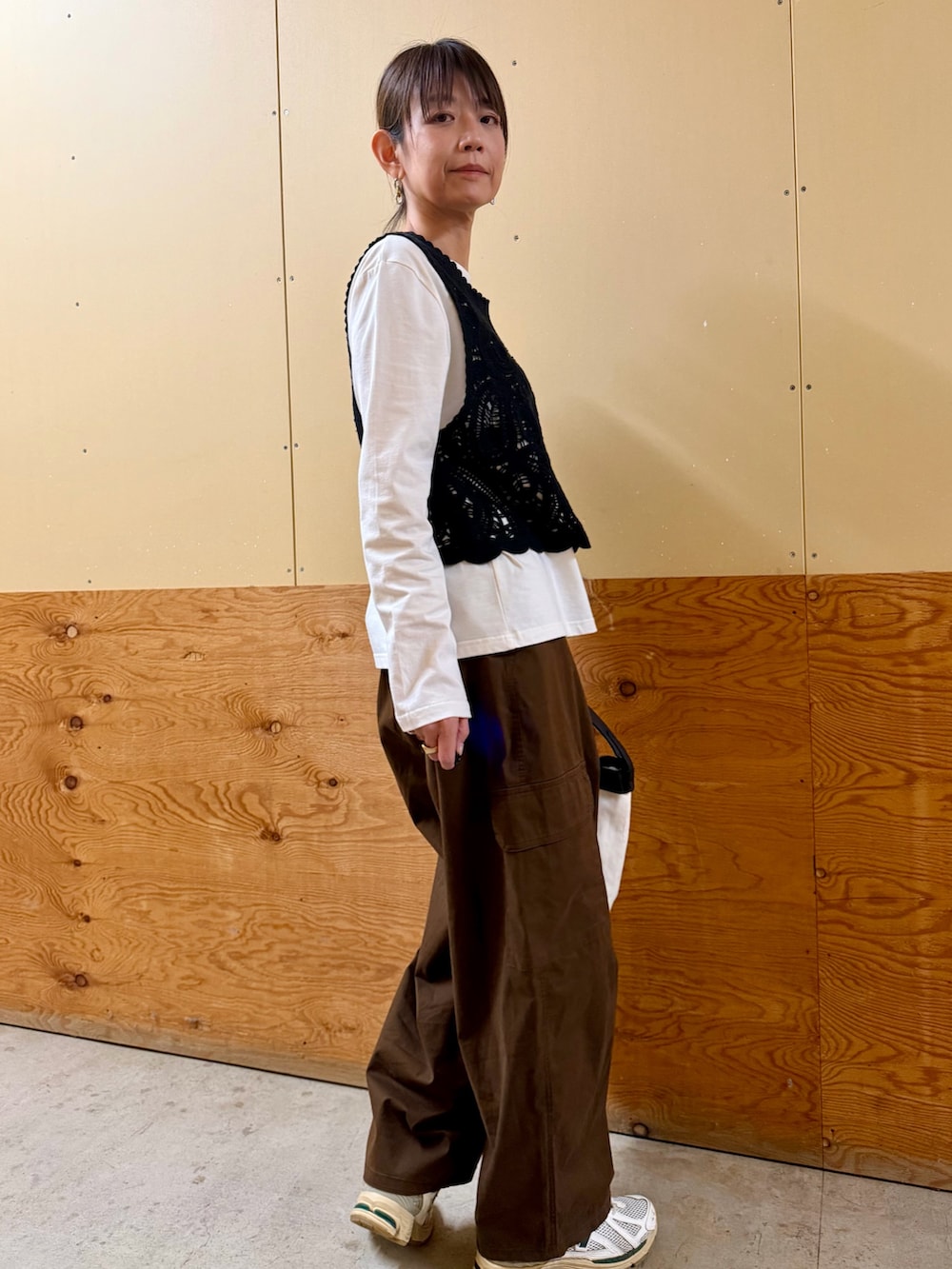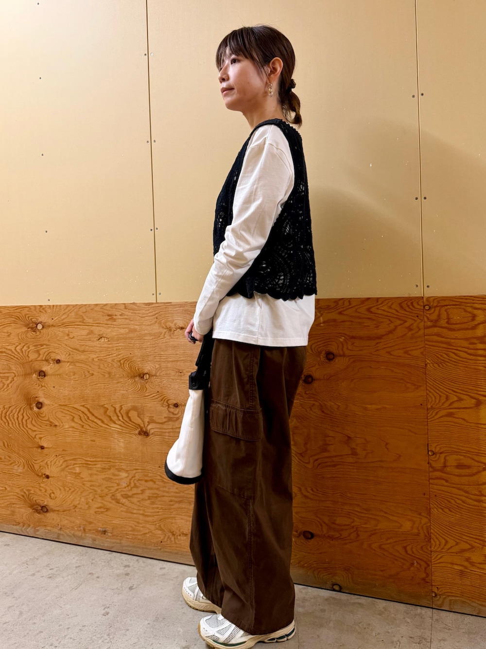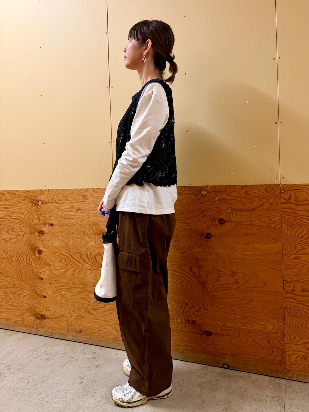 ✔︎バレルカーゴパンツは女性らしくゴツくなりすぎないシルエットで、肌触りも良く後ろがゴムで履き心地もとても良いです!