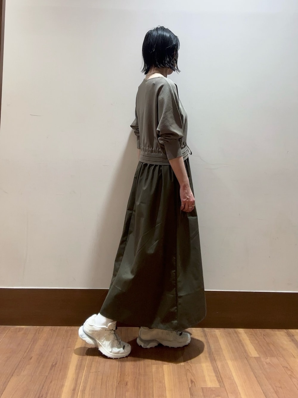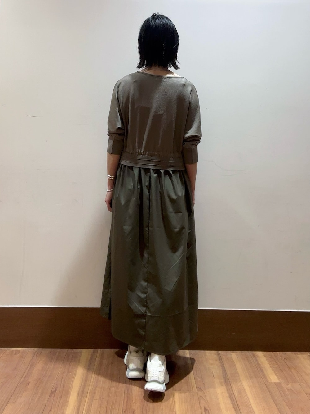 ウエストは絞るとラインがでるので女性らしいシルエットと演出できます😊
