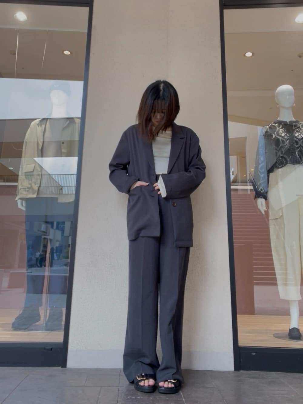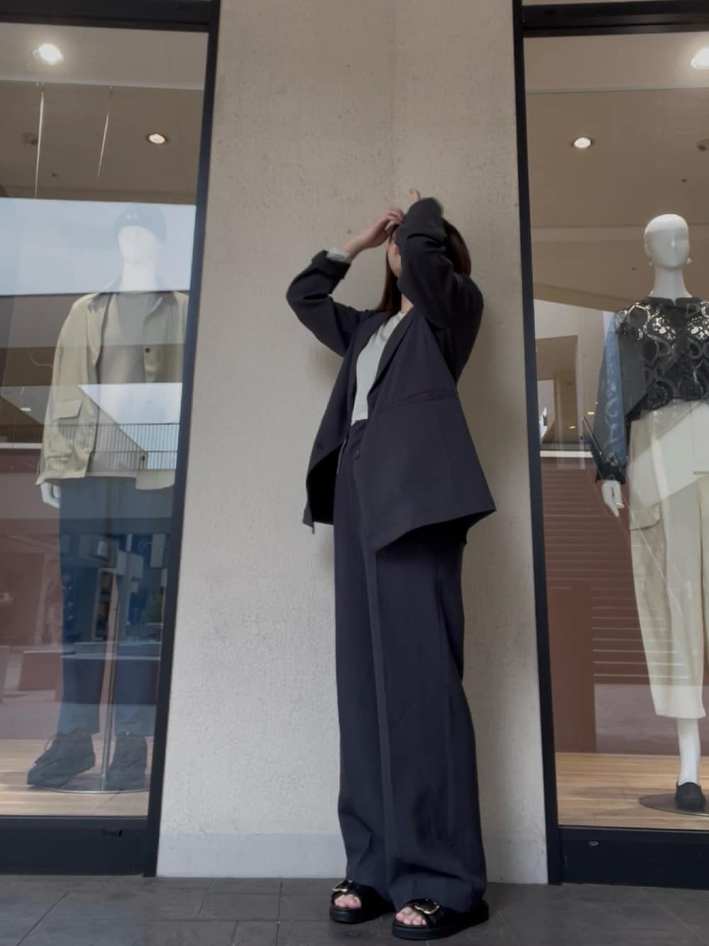 足元はサンダルでラフさを足して、かっちりしすぎない大人スタイルに仕上げました🖤