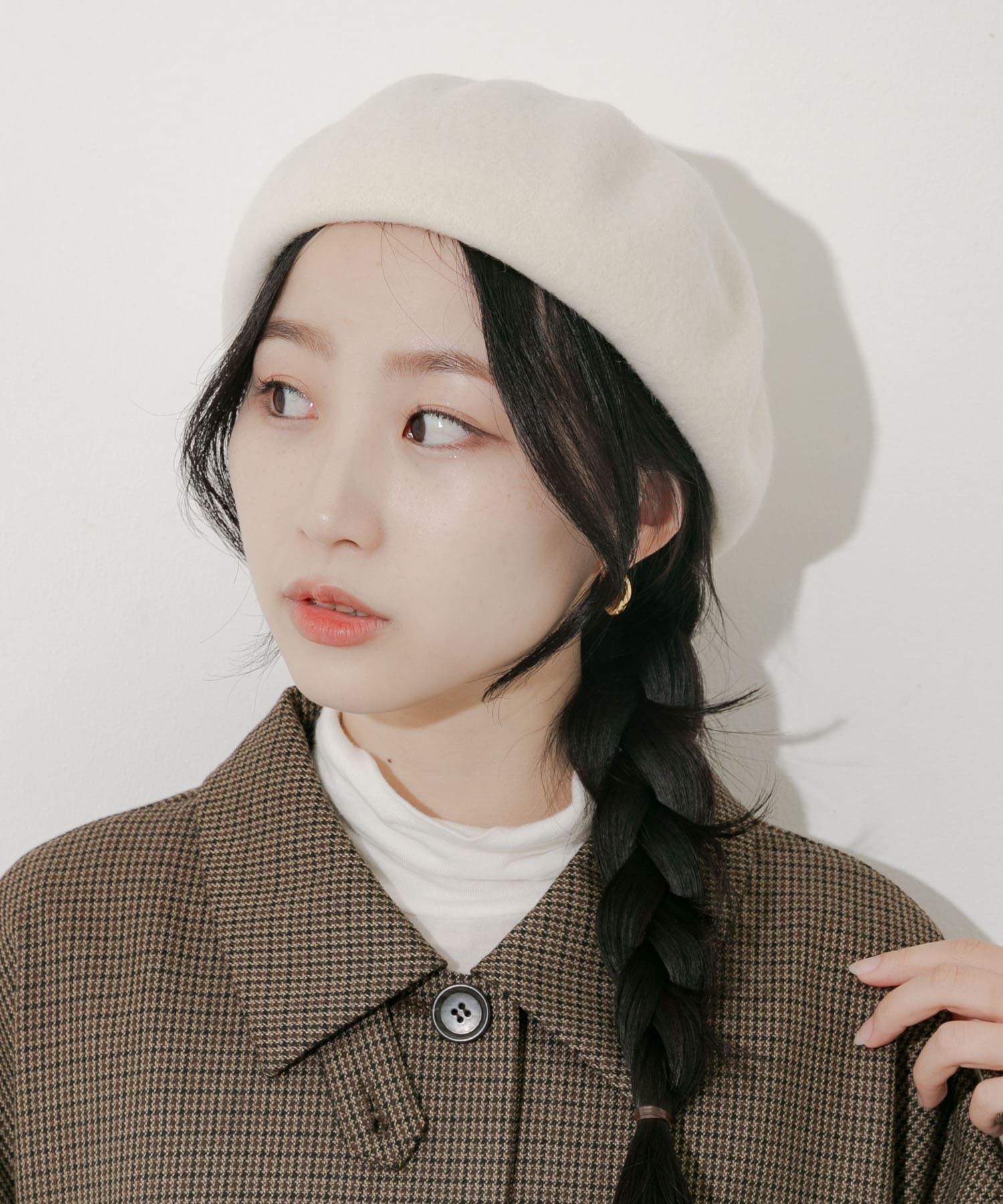 ベレー帽をかぶれば一気に季節感アップし、上品で大人可愛い印象に。