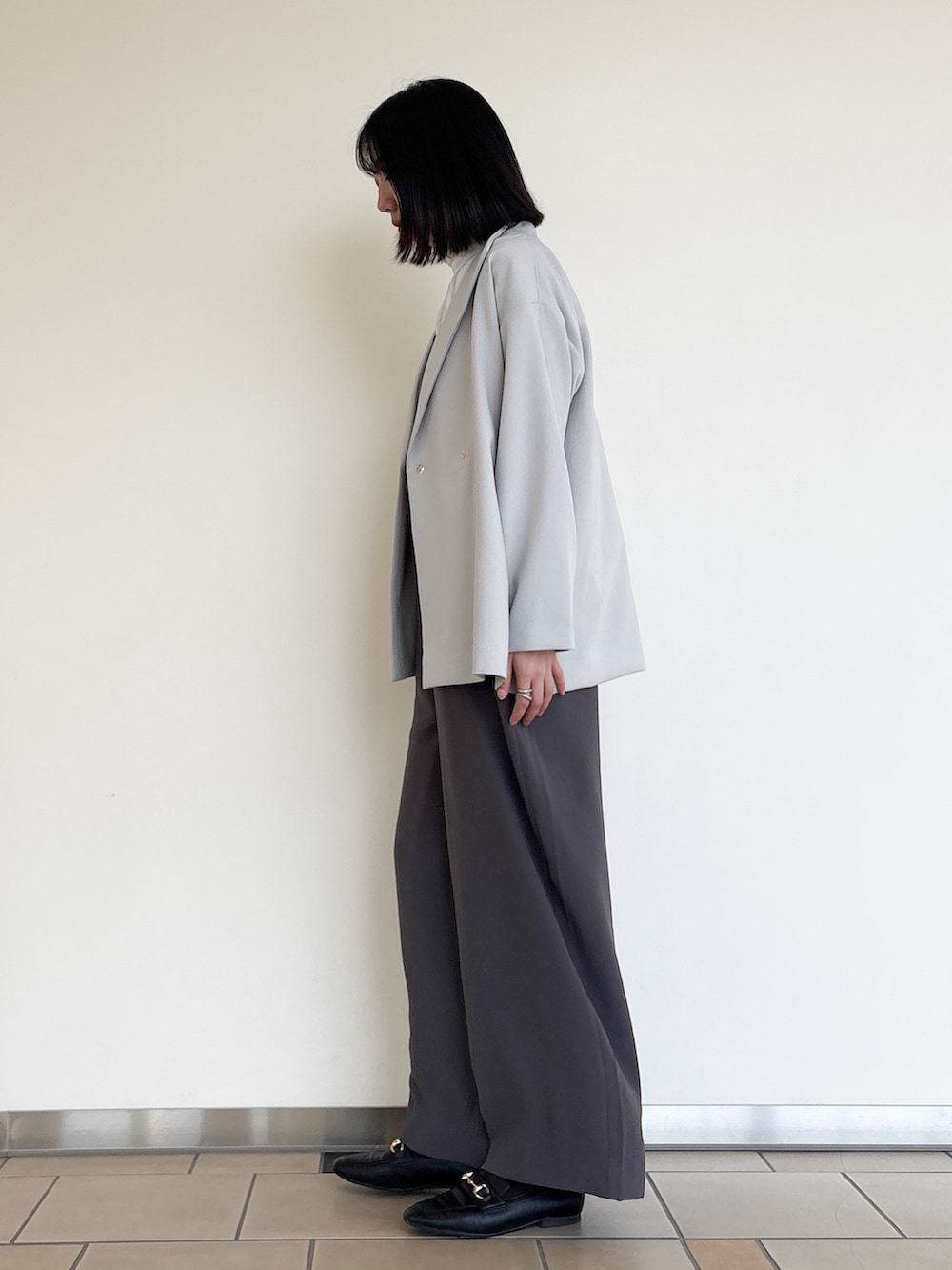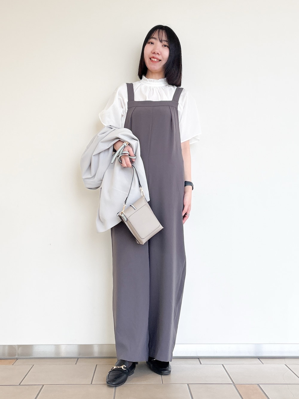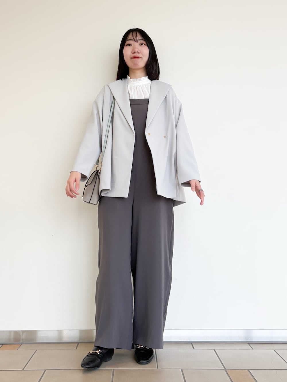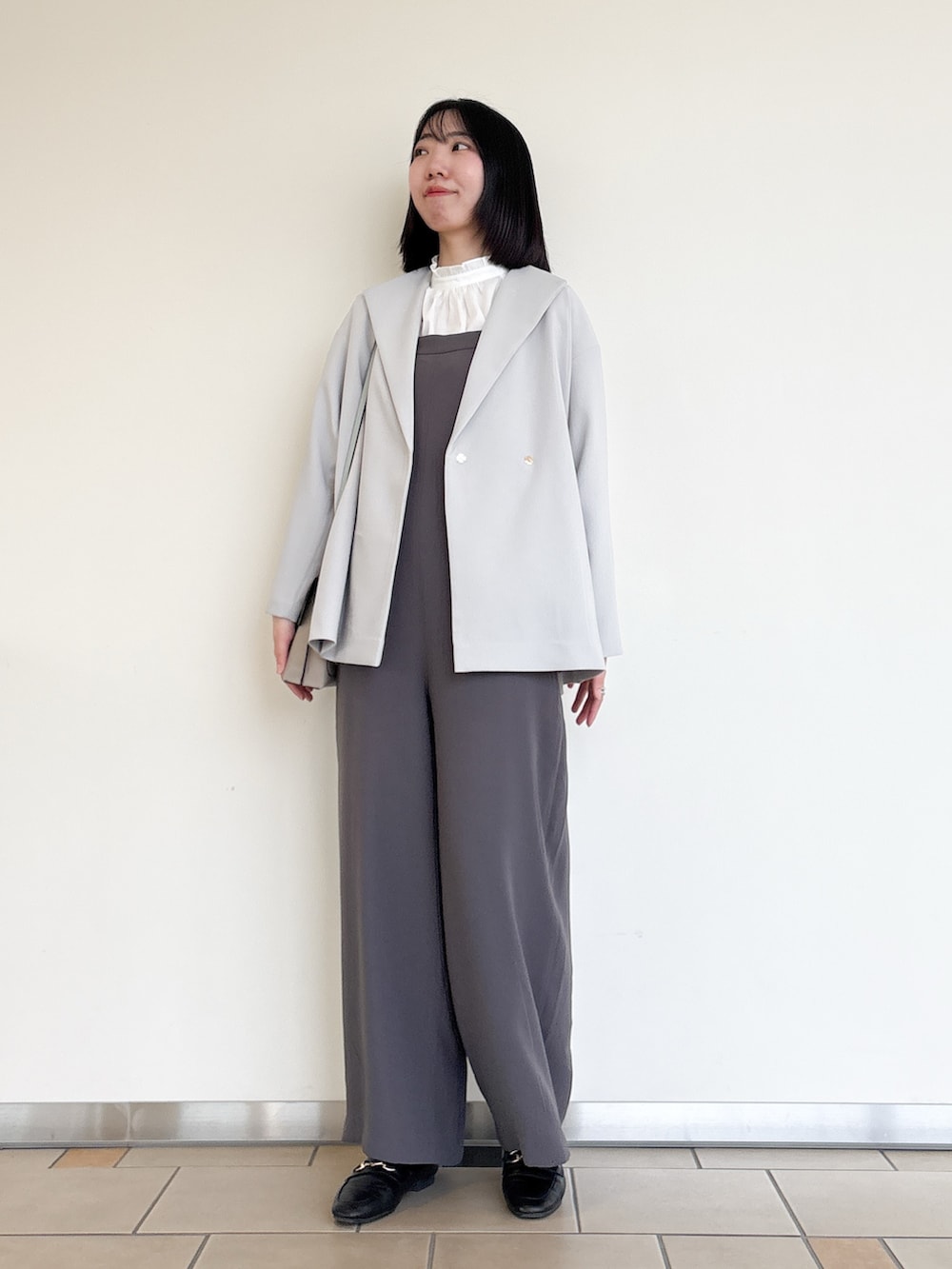オールインワン×ショートコートの綺麗めスタイル◎