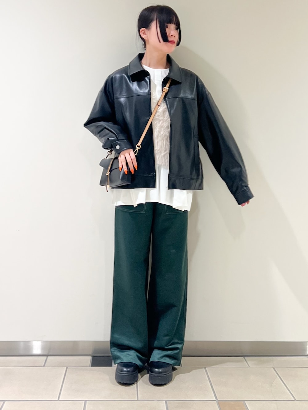 ITEMSフェイクレザーZIPUPブルゾン- カラー: