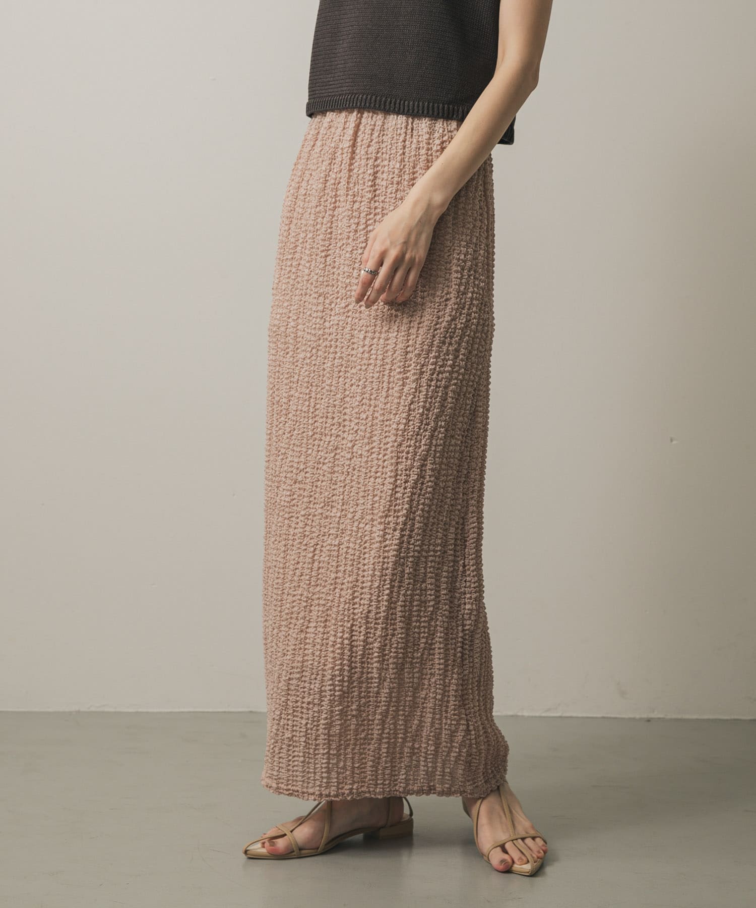 スカートは、ぽこぽこした生地感がとても可愛く、カジュアルからきれいめまで幅広いコーデに使えます!