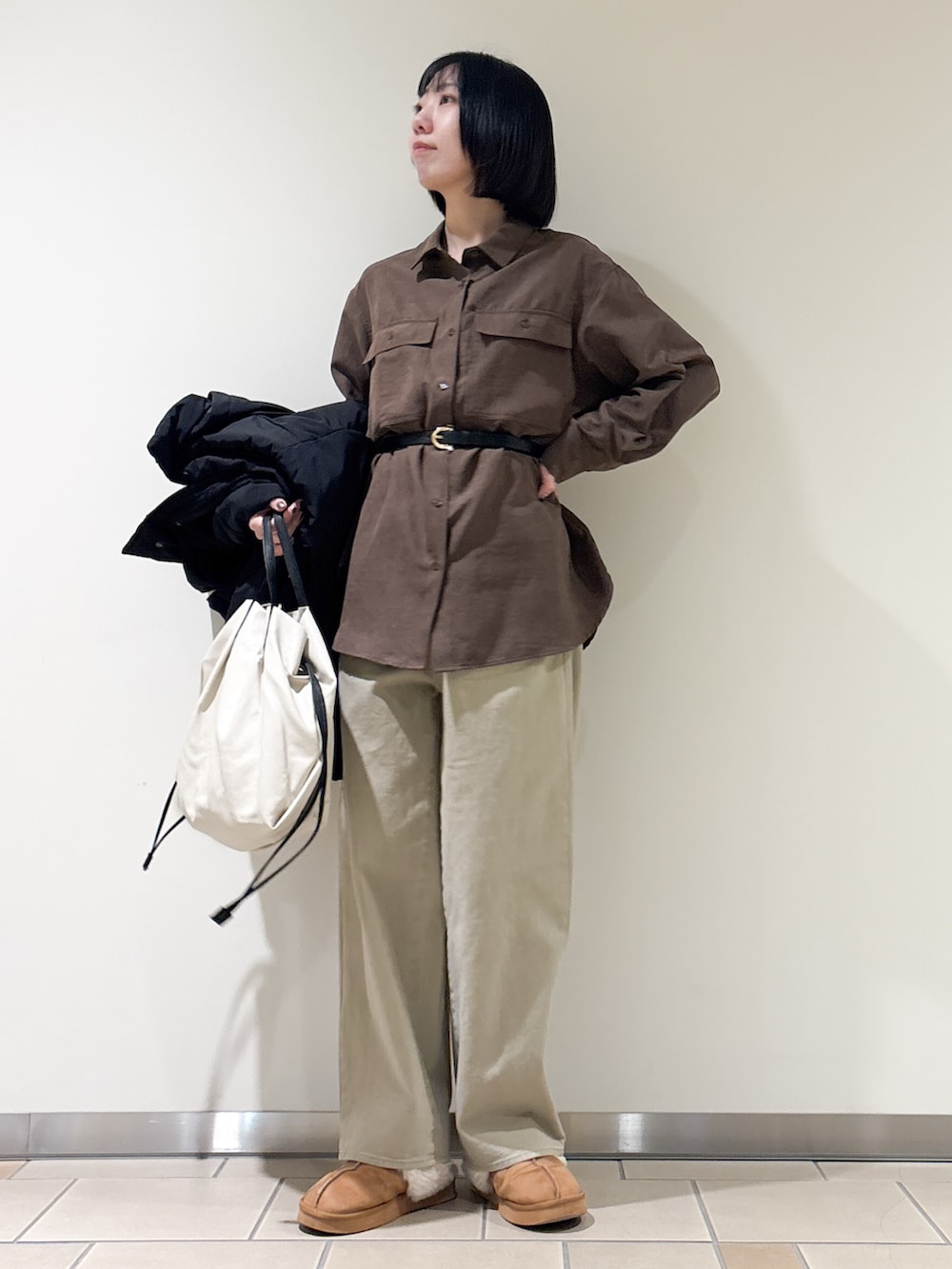 ゆったりシルエットなのでベルトでウエストマークしてメリハリをつけました◎