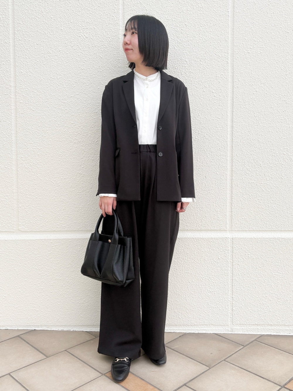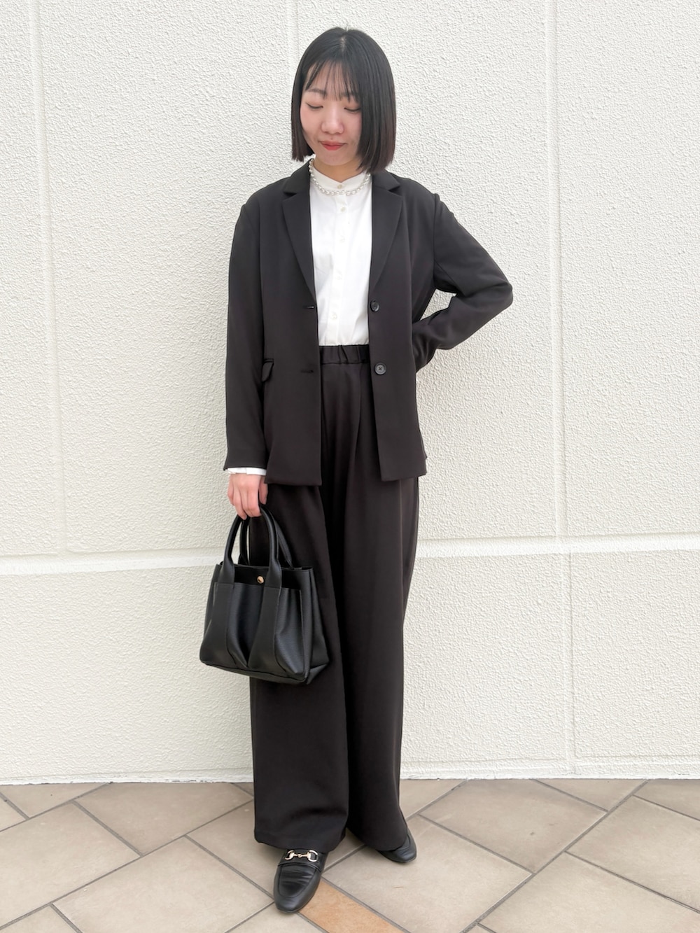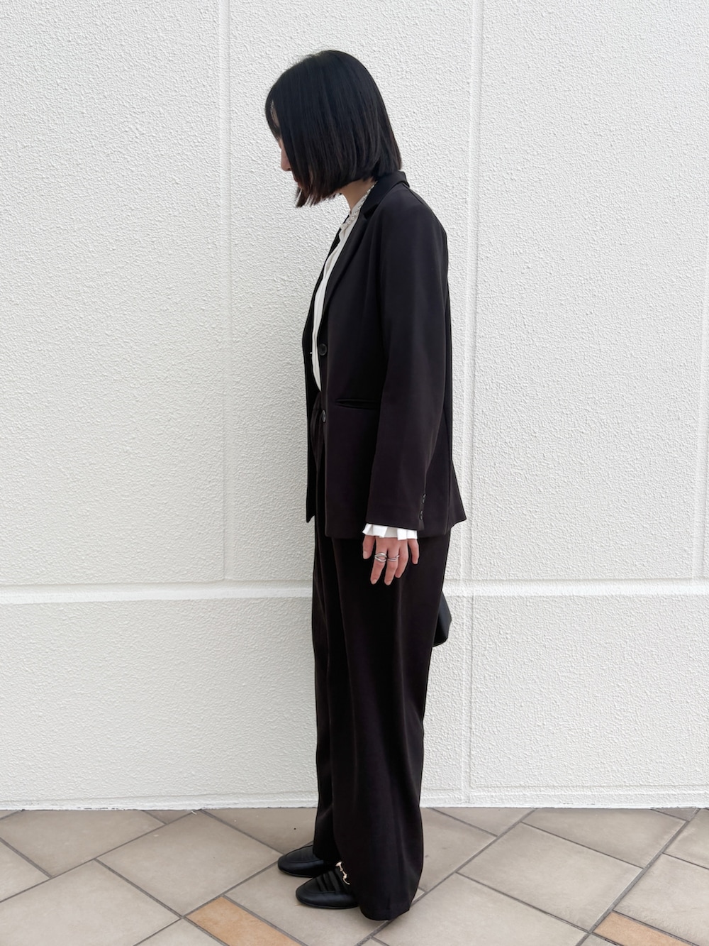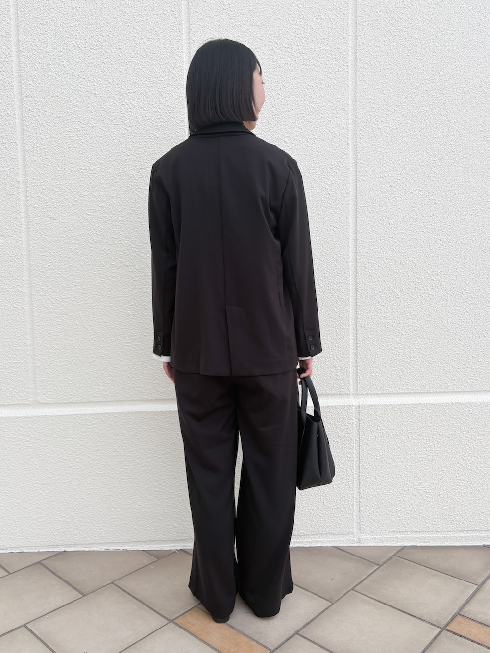 ジャケットのサイズ感は程よくゆったり。シルエットはストレートラインが綺麗でスッキリ見えます!