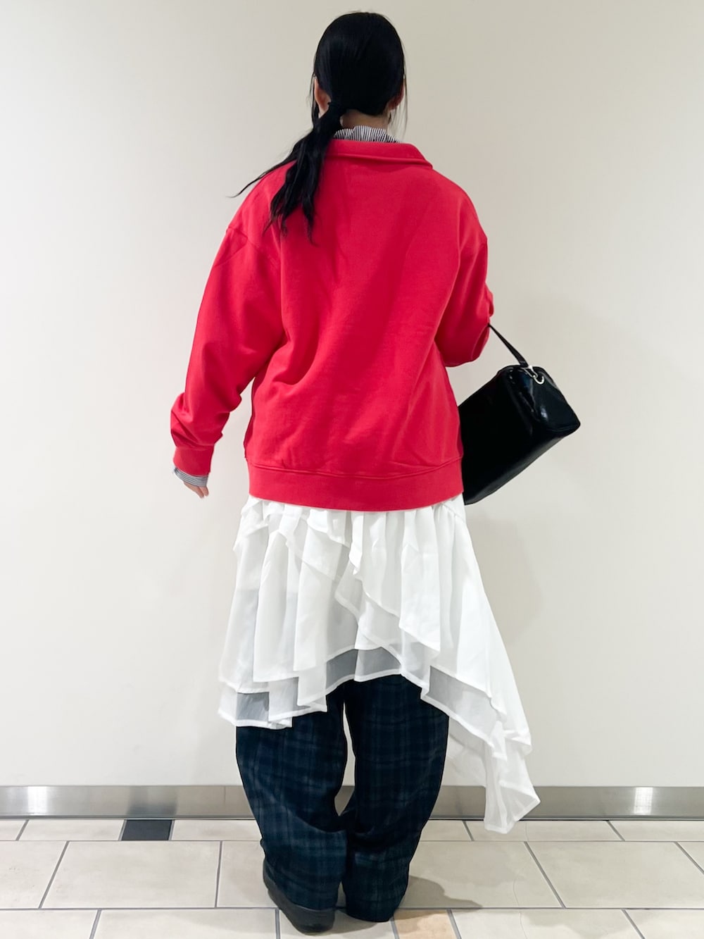 SENSE OF PLACEチェックバレルレッグワイドパンツ- 着用カラー: