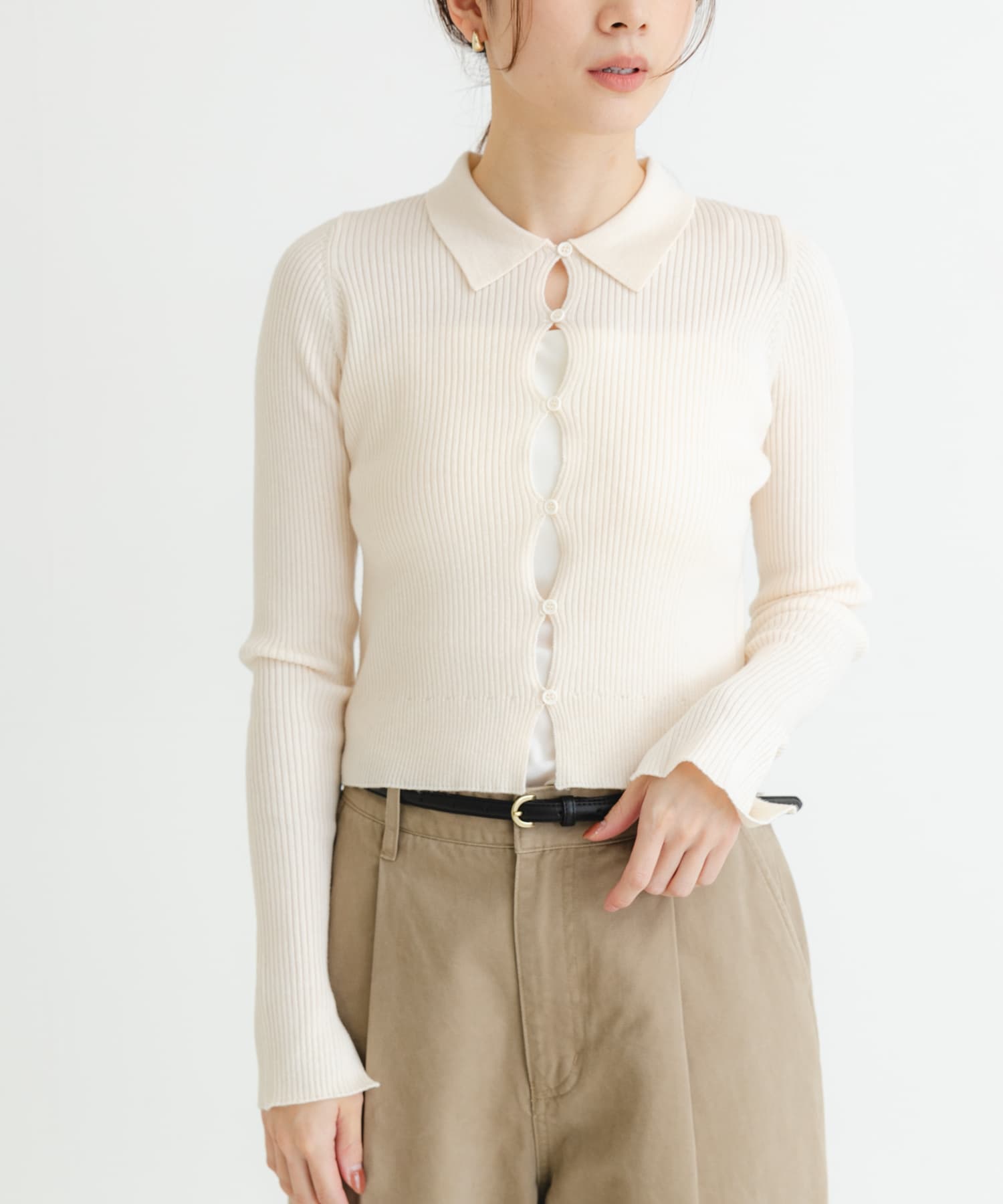 シャツカラーリブニットカーディガン