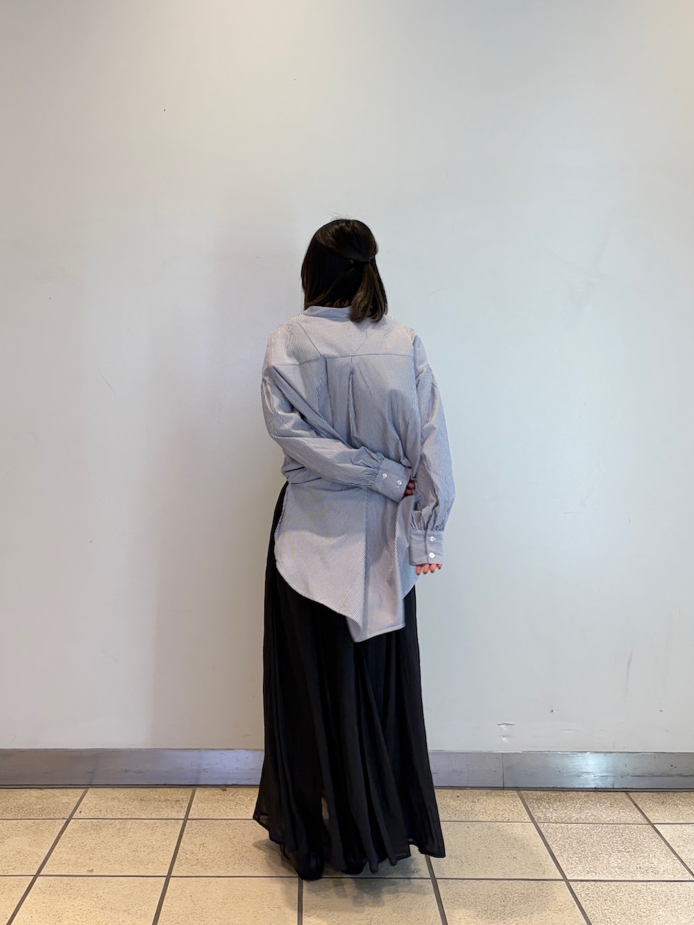 ボトムにはシアーのスカートを合わせて少しキレイめに!