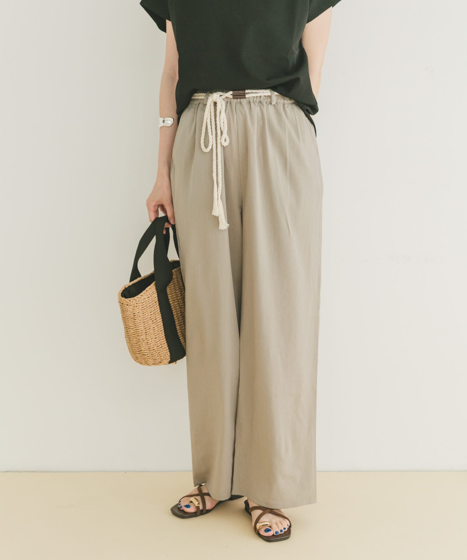 ロープベルト付きリラックスパンツ