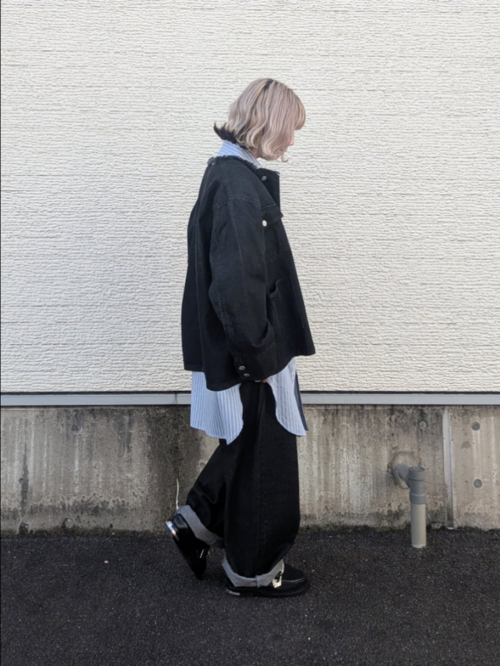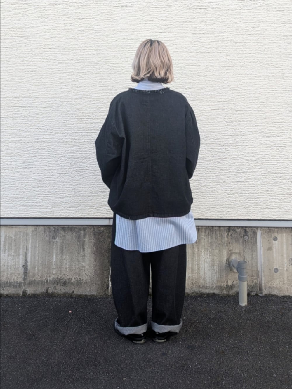 長めのシャツでとことんルーズな着こなしにしてみました。