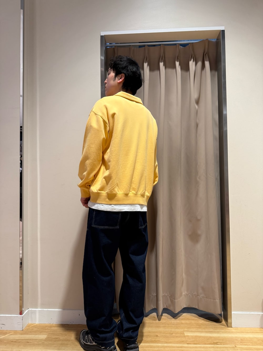 ハーフジップスウェットにデニム合わせのカジュアルスタイル!