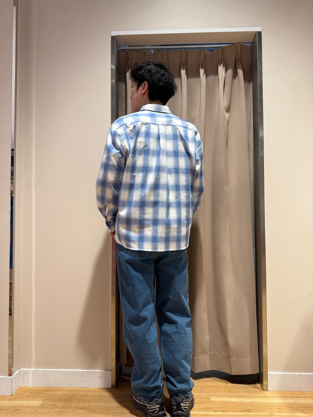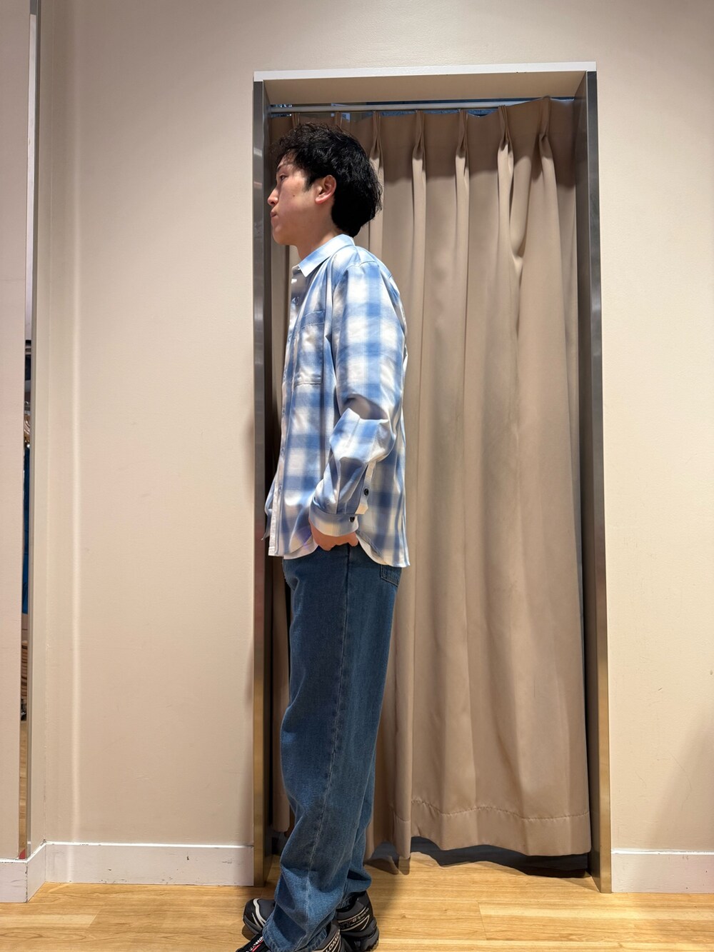 オンブレチェックシャツにデニム合わせのカジュアルコーデ!