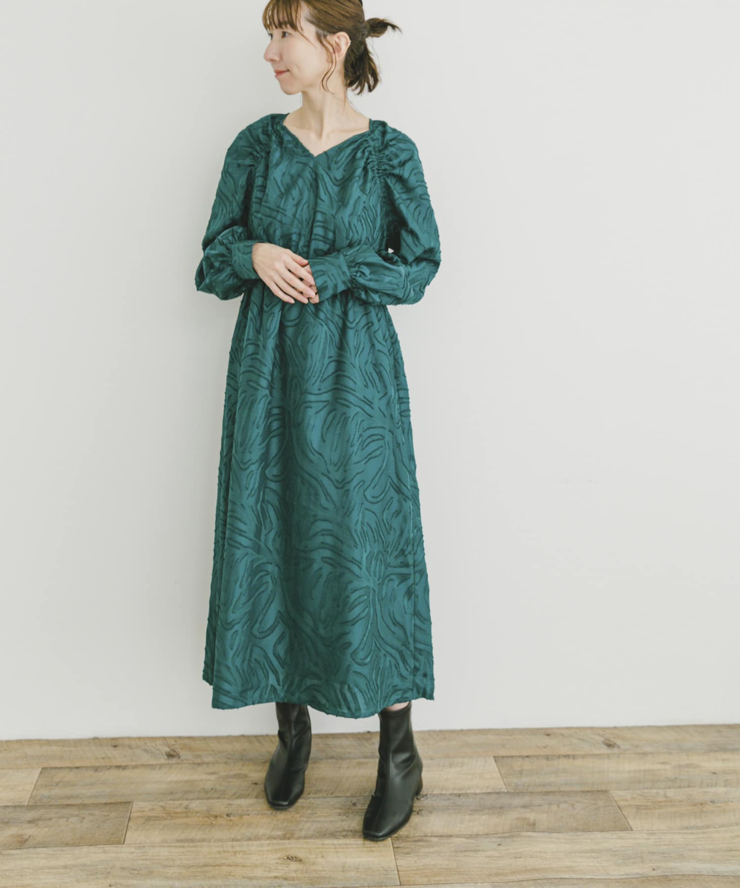 ITEMSジャガードロングスリーブワンピース- カラー: