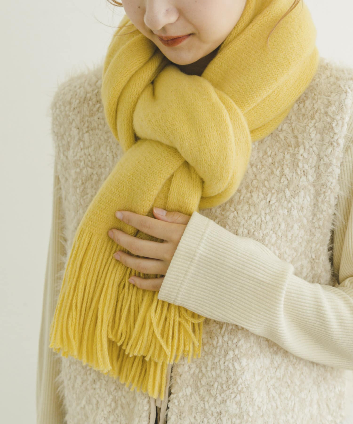 イエローのストールでコーディネート全体に差し色を入れたのもポイントです💛