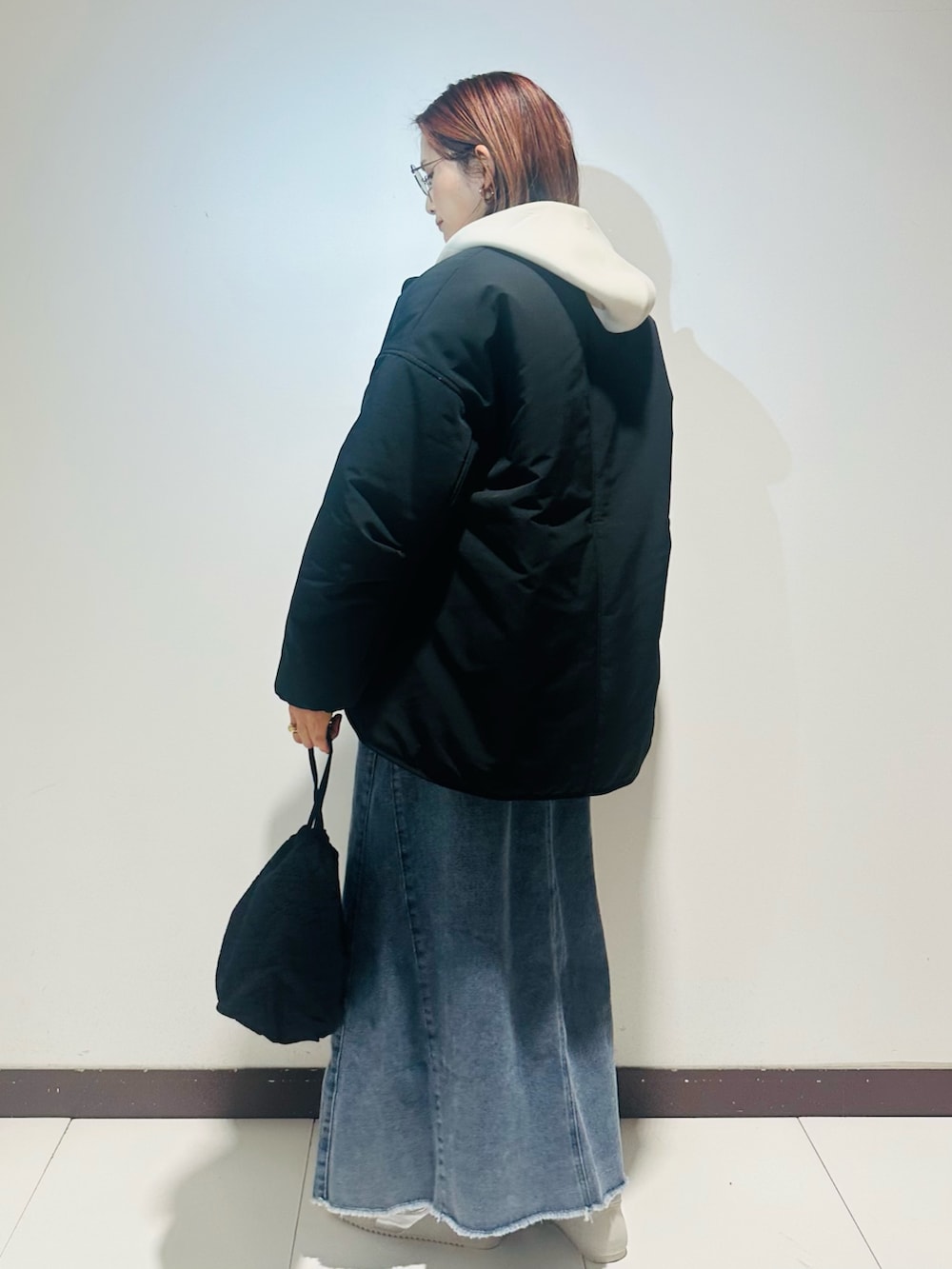 アウターは、オーバーサイズのパーカーを中に着てもごわつかないです!