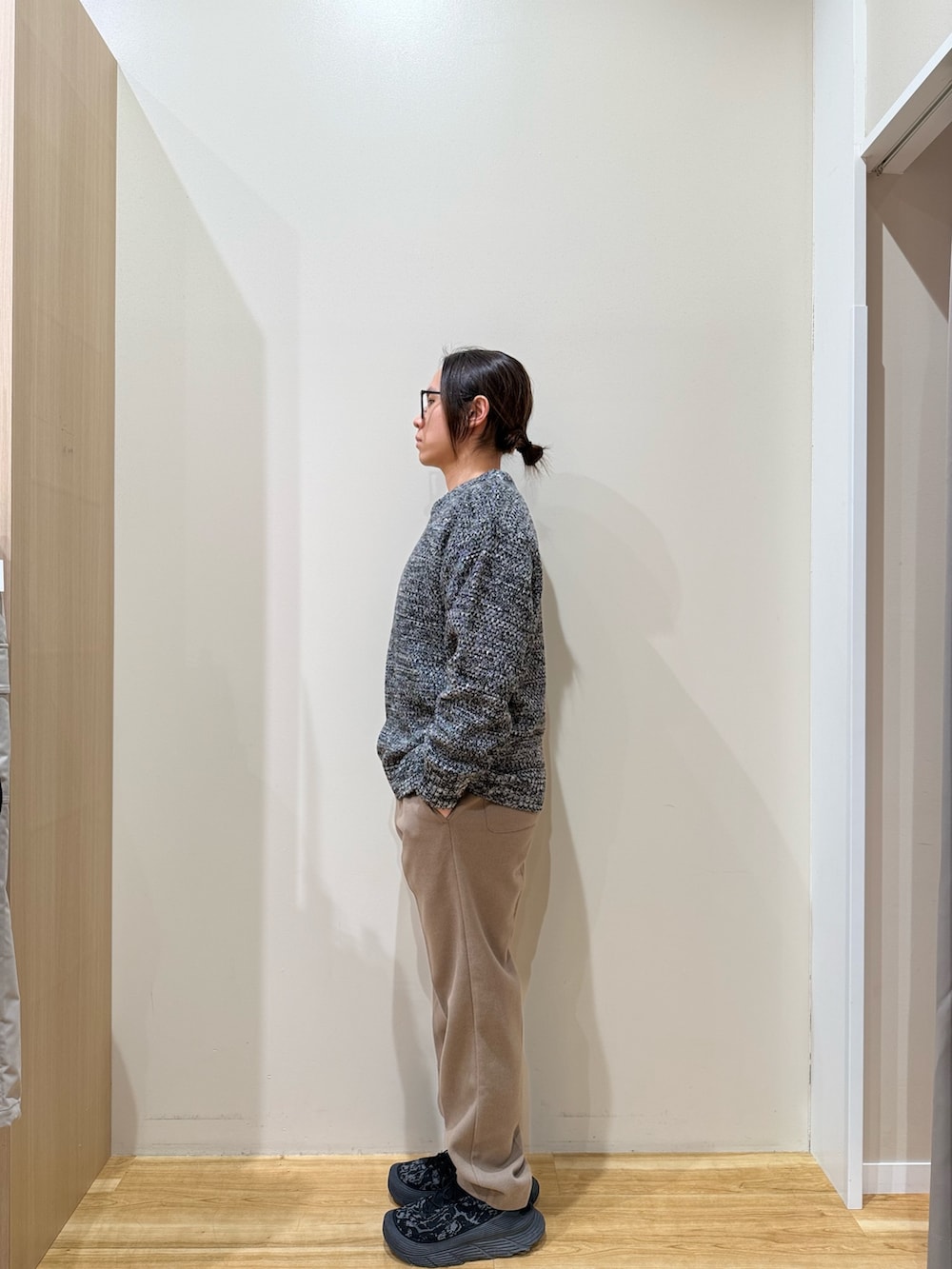 今回はメランジ調のカノコニットに、メルトンスラックスを合わせたきれいめリラックスコーデ。