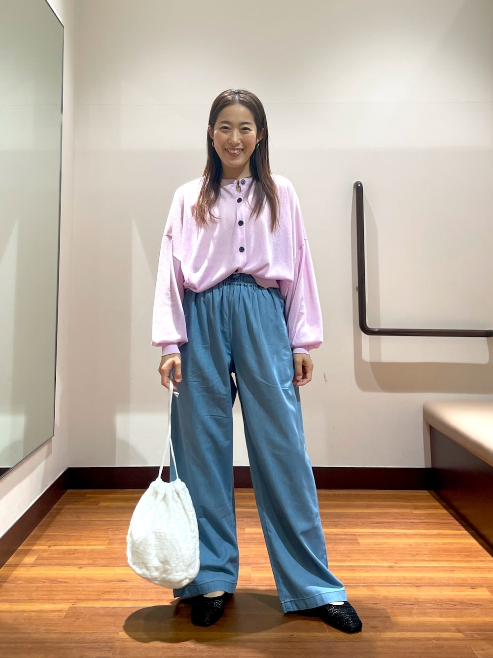少し長めな丈感なので前の片側だけインするとスッキリ見えて低身長の方にも着やすいと思います✨